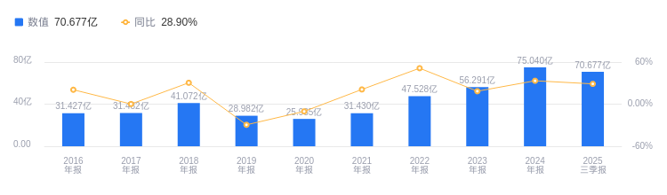 偿债能力方面,2025年三季度福耀玻璃资产负债率为49.79%,去年同期为45.57%,高于行业平均42.48%。从盈利能力看,2025年三季度毛利率为37.36%,去年同期为37.82%,高于行业平均22.52%。
