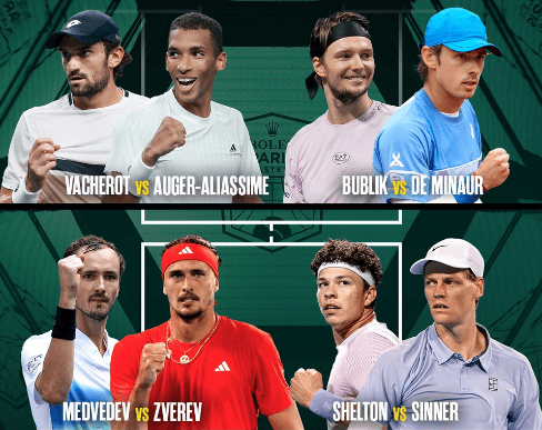 虎扑10月31日讯北京世界今天凌晨,ATP1000巴黎大师赛结束男单1/8决赛争夺。头号种子辛纳和3号种子兹维列夫均成功晋级到八强。