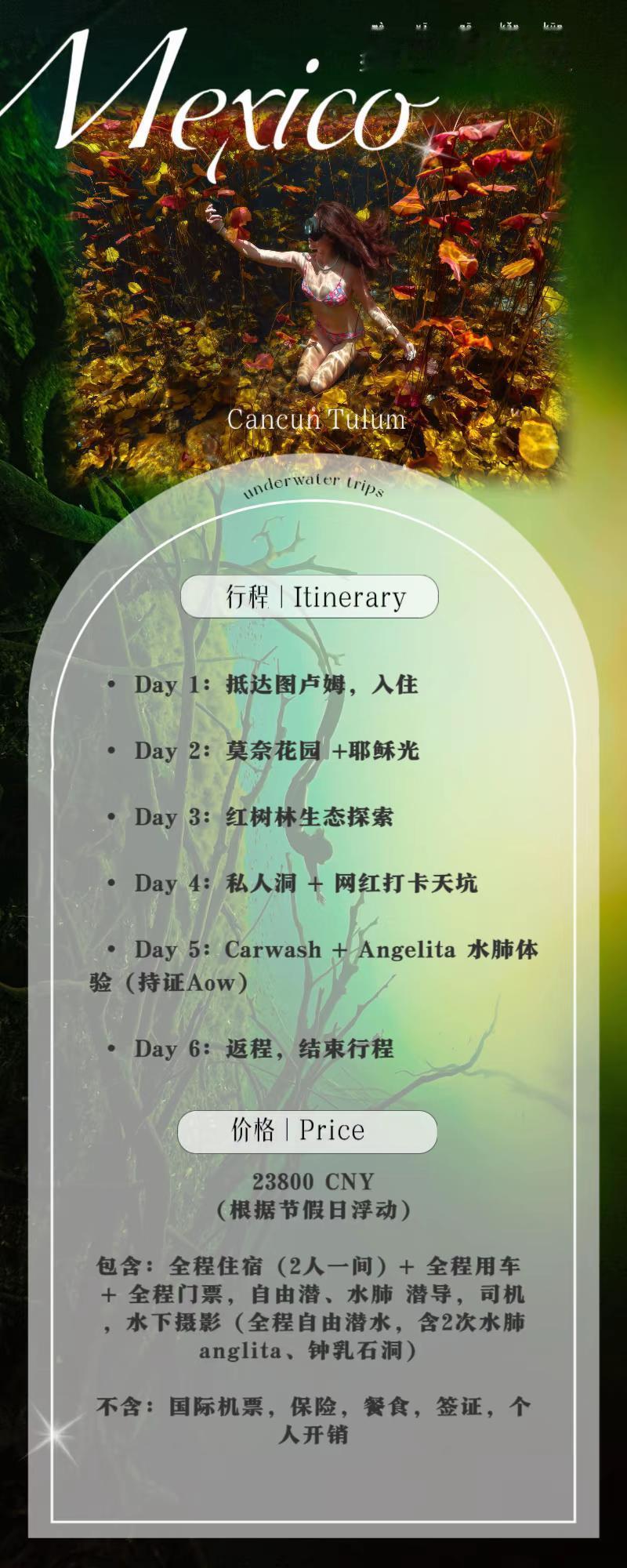 墨西哥坎昆 中文女水摄 600🔪一洞任选 最多4人 洞任选 600🔪 包含门票 摄影师拍摄拍摄 相机门票费用 ,2洞起报名 含tulum接送 视频原片全赠 水下调色视频两段 精修9张 需自带硬盘 每洞拍摄2小时 @NiceChica🌺环球追鲸📸 墨西哥亡灵节 墨西哥坎昆 亡灵节 亡灵节攻略 坎昆潜水