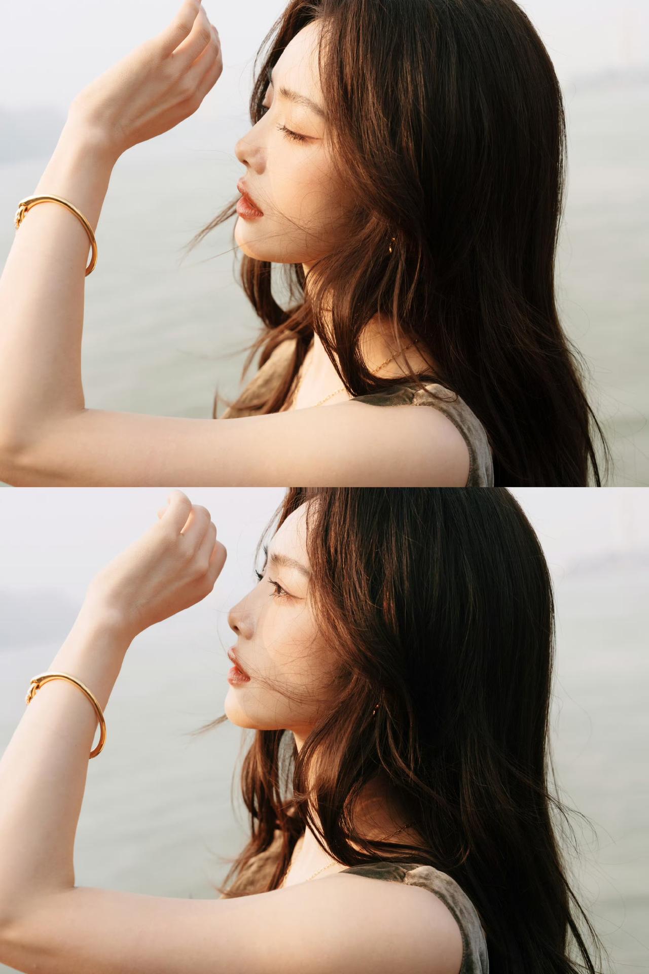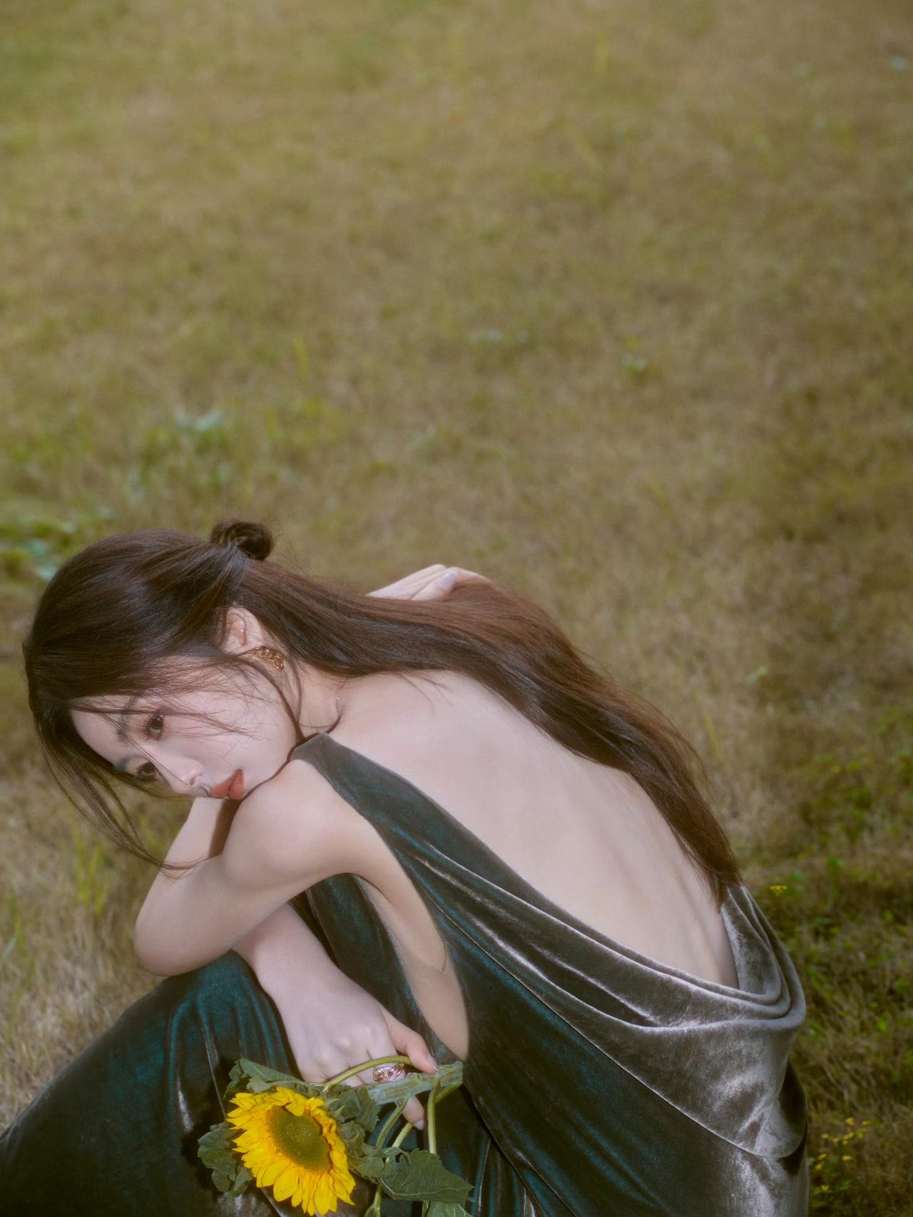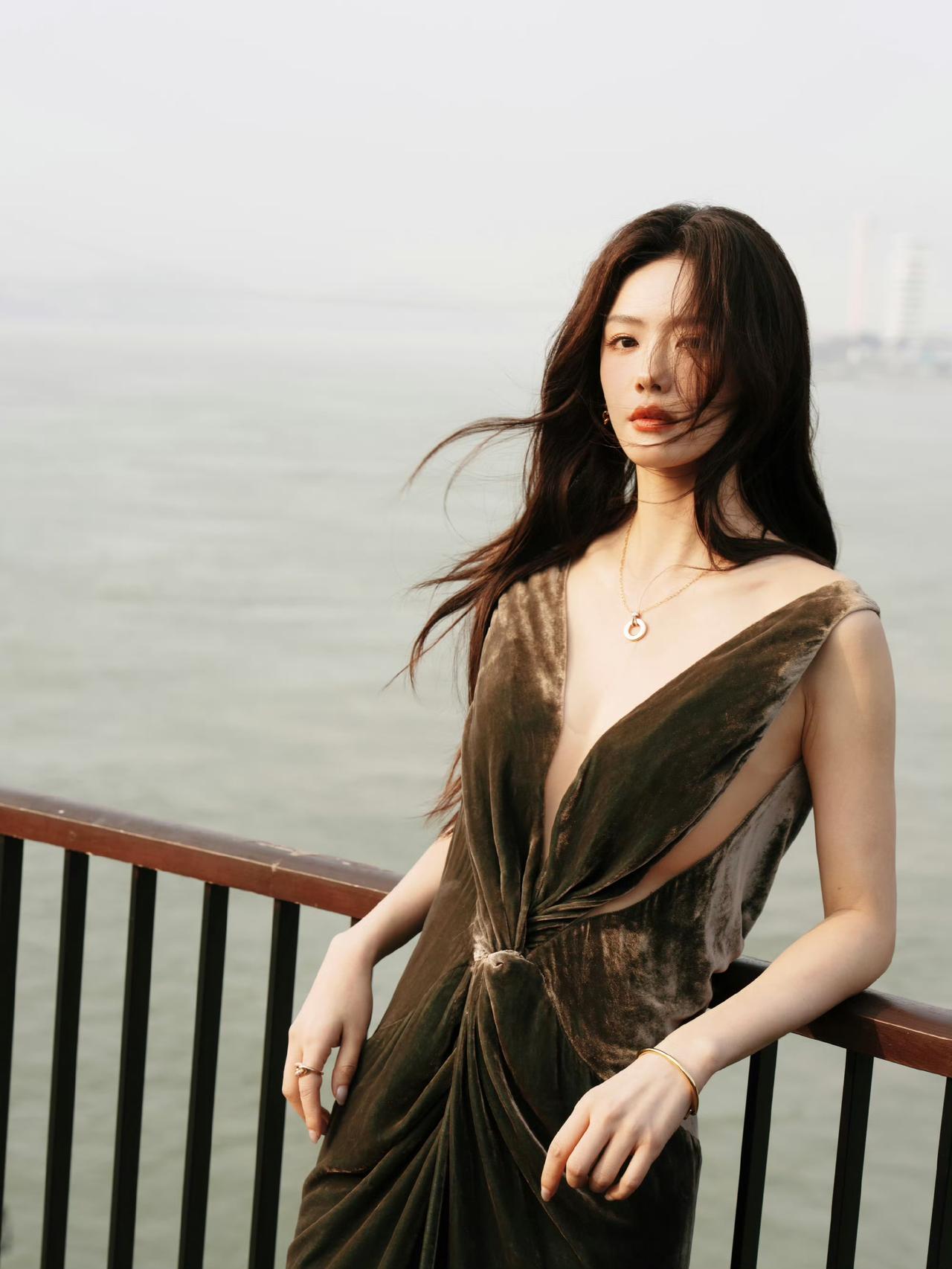 蔡文静半透针织将朦胧张力拉满,每一寸肌理都在月色里写满撩人的秘密,风动发丝时,