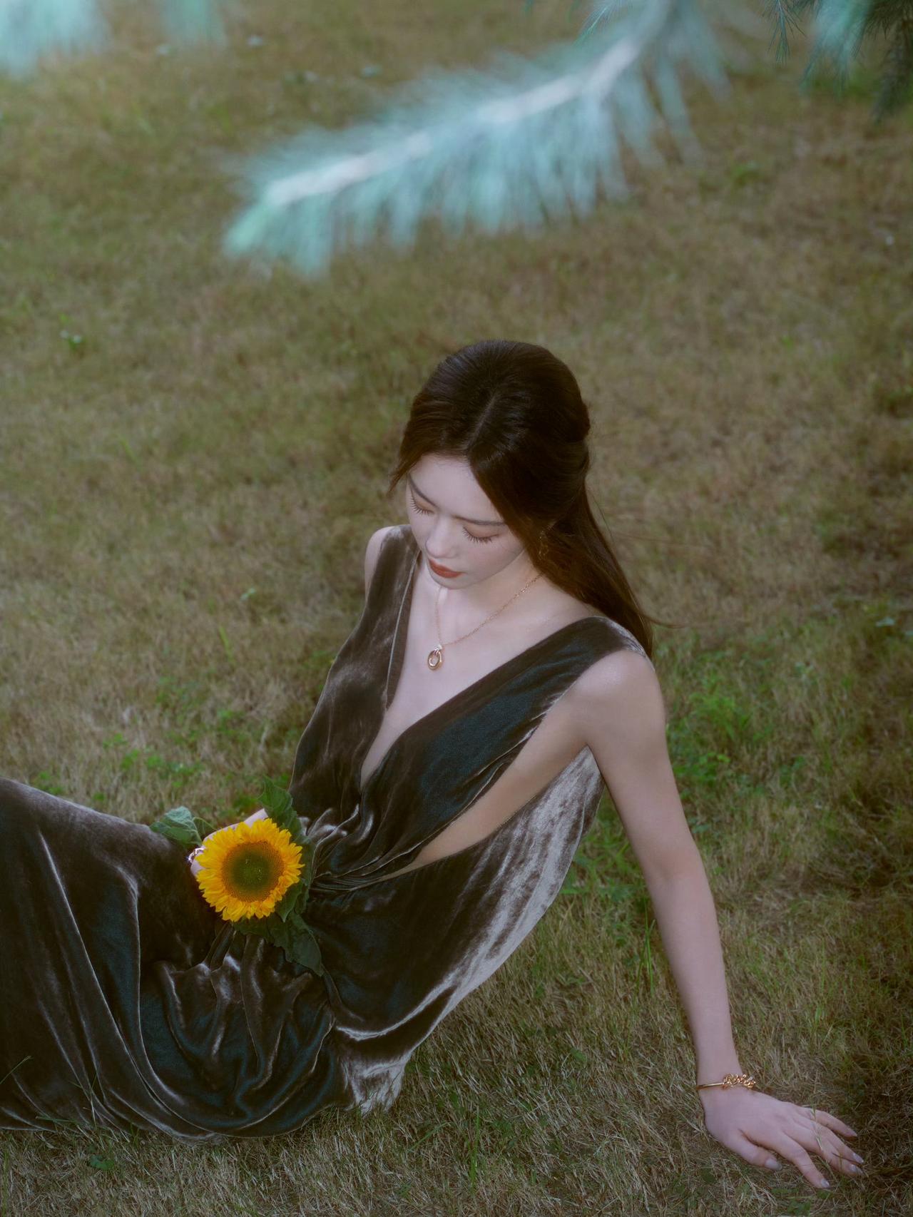 蔡文静,夜晚的森林,闪耀的金色礼服,惊艳的瞬间美到发光礼服蔡文静明星穿搭气