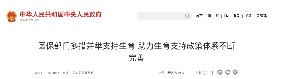 2024年9月10日,国家医保局局长章轲在国新办举行的新闻发布会上表示,国家医保局下一步将推动探索生育津贴更多直接发放给女职工本人。