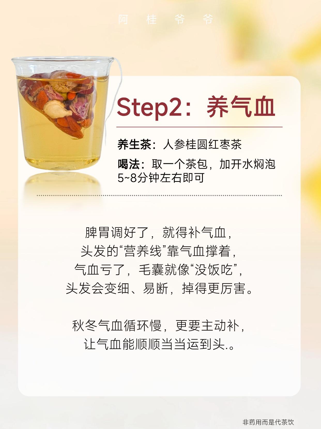 分享3步养发顺序,从脾胃基础到补充腎气,从内调的角度入手养发,养发更高效~