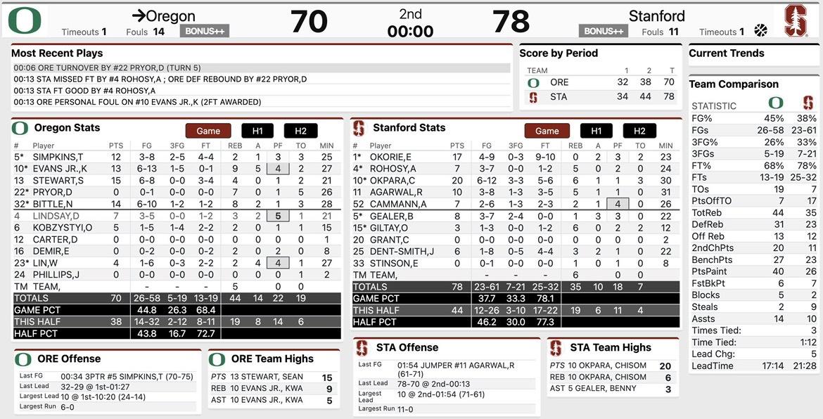 虎扑10月31日讯NCAA热身赛:俄勒冈大学70-78不敌斯坦福大学。