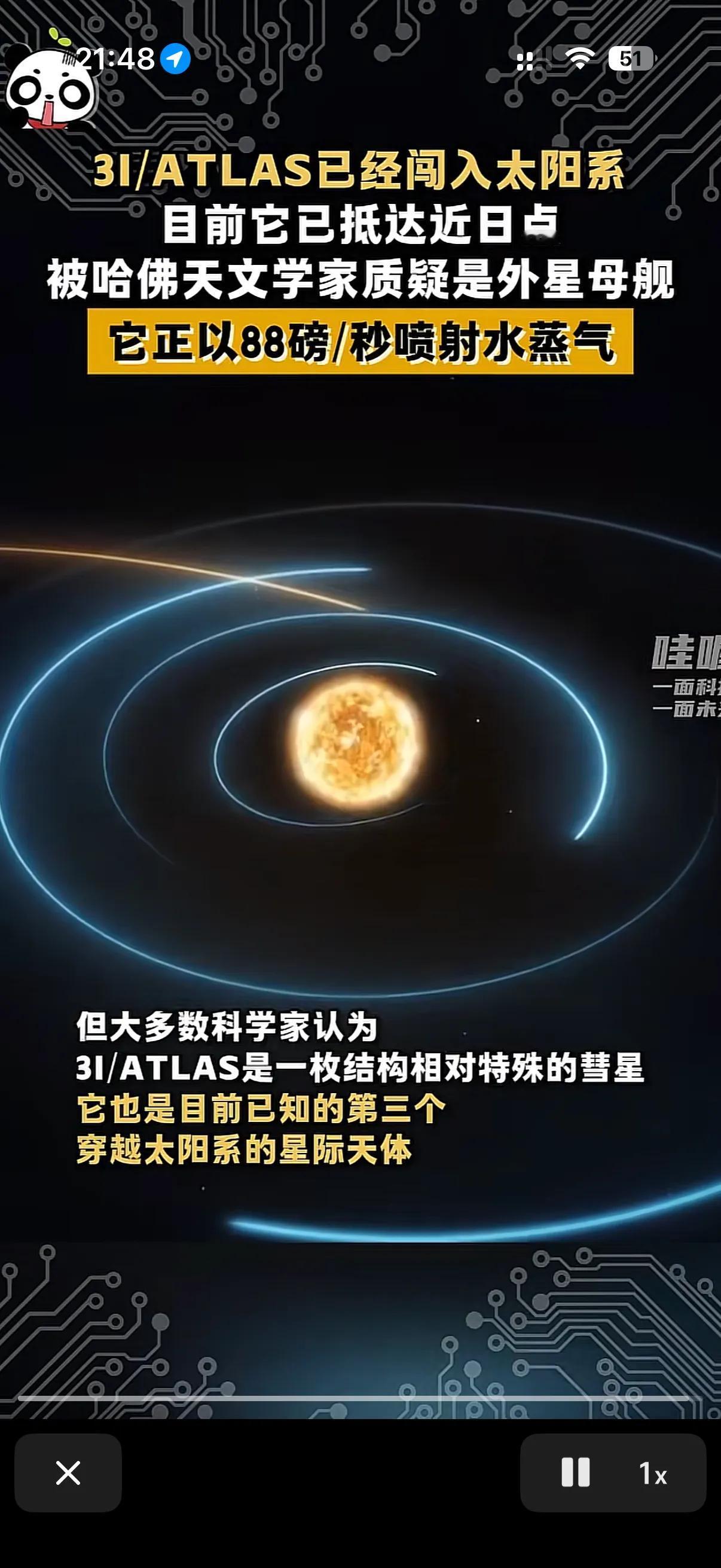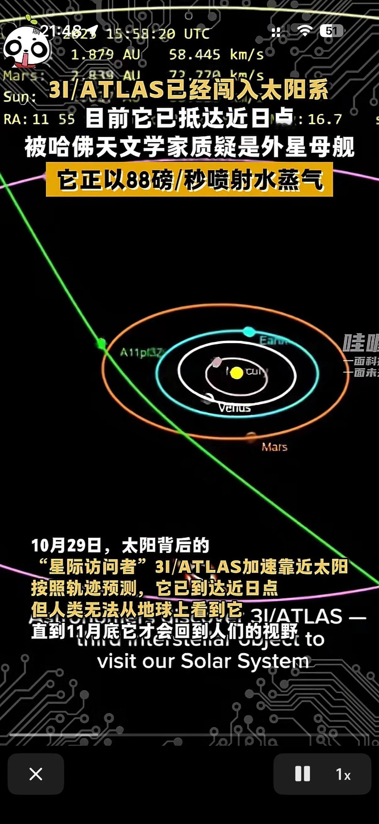 这3i/atlas到底是啥啊! 有的天文学家说这就是外星人的飞船! 有的说这就是颗流星! 有的说这就是颗彗星! 有的网民甚至说就希望它早点来吧,毁灭吧!现在这颗天外来客已经跑到近日点了,也就是太阳的背面去了! 已经完全的离开了人们的视线!,但是不要慌,只要进入到十一月,他还会从新回到大家的视线! 之所以有很多人怀疑他是外星人的外星飞船,因为有这提议的有不少人是著名的天文学家! 其中就包括哈佛大学的天文学家! 不过该来的早晚会来!日子还要过下去不是!
