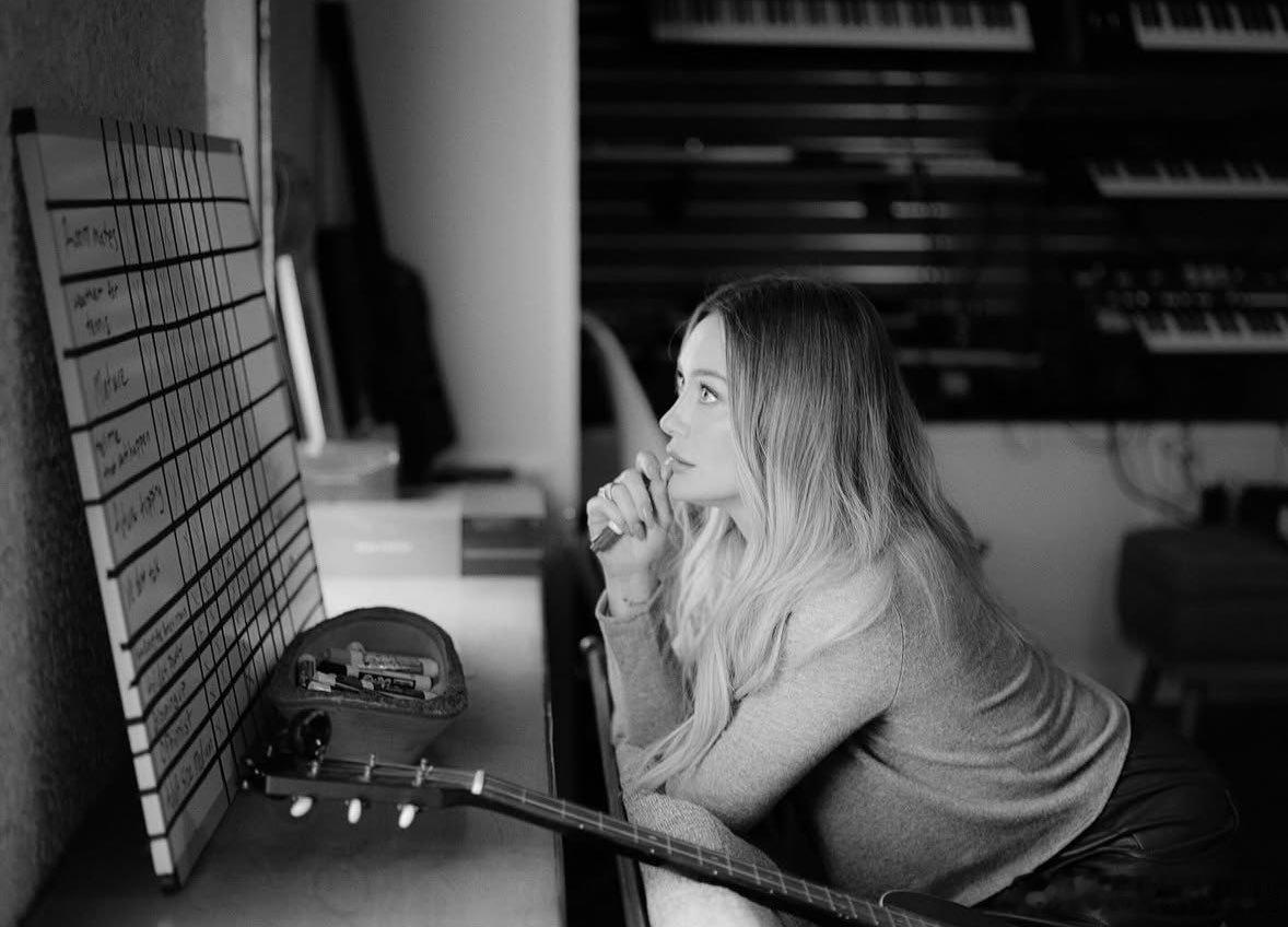 Hilary duff希拉里达芙继续为回归乐坛预热,新录音室照片释出,甚至还能看到板子上有十一首新歌