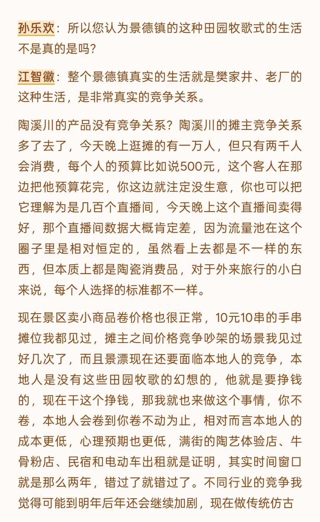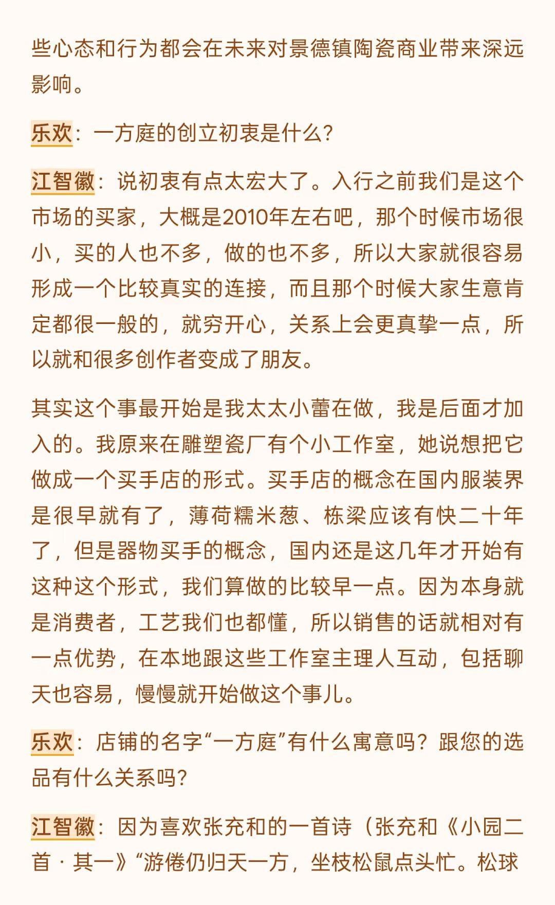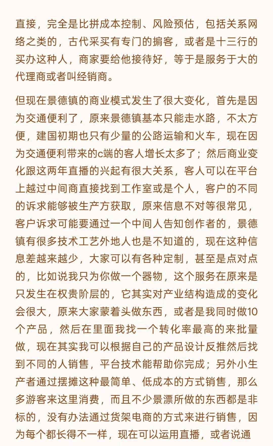 景德镇的变化是历史级别的(上) 文字是数月前和一位陶大博士生的问答式聊天录音整理,磨磨蹭蹭改了好些天,里面有一些暴论吧,但基本是我真实观察后的想法,当然很多尖锐的观点我不会写出来。 这一年来,行业的变化、城市的变化,包括我心态的变化都很大,作为一个经营在地品牌的本地人,适应环境变化是我目前最重要的工作之一。 没有什么比生存更是一个直接的问题,无论是个人还是一个团队,其实我有很多想写的东西,比如: 社交媒体在摧毁创作作者心态,个体潜能被算法镇压,数据大于创作、大于不确定性,生命感消失,设计和表达成为计算,平台流量决定了创作思路和方向。 创作本该是走走停停,甚至不是一条线性的路。但对于有人气的作者来说,所谓的风格成为枷锁,他们接受不了改变带来的后果。 行业材料商和基础设施提供者对于技术的研究比创作者更精进,看材料品牌的电商数据和店铺主推是了解时下流行趋势的直接窗口,如果材料商们下场生产链接客户,个体创作者的机会会越来越小。 … 不展开说了,这些只是团队内部的讨论时的一些碎碎念而已,下个月初我们管理团队会前往益子、东京和京都,看看商业,逛逛美术馆、找找品,也许会找到一些日本买手的合作,多看看小伙伴们总会有感触和自我迭代的,算是给内部的学习投资吧。 如果意识到变化到来,提升自己应对,是我自己的方法,对,把自己作为方法,也可以这么理解。 小蕾的一方庭 景德镇旅行 景德镇手作 景德镇探店 景德镇雕塑瓷厂 景德镇攻略 景德镇打卡 手作陶瓷 陶艺家手作