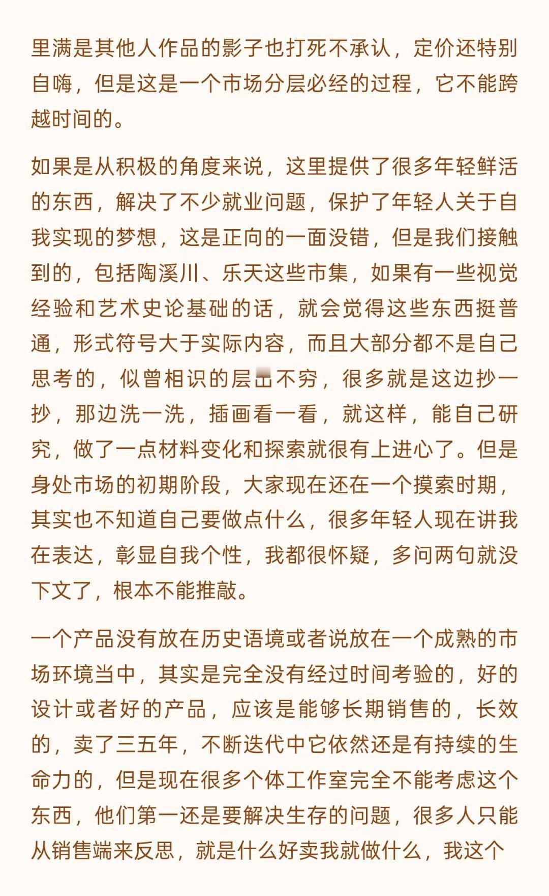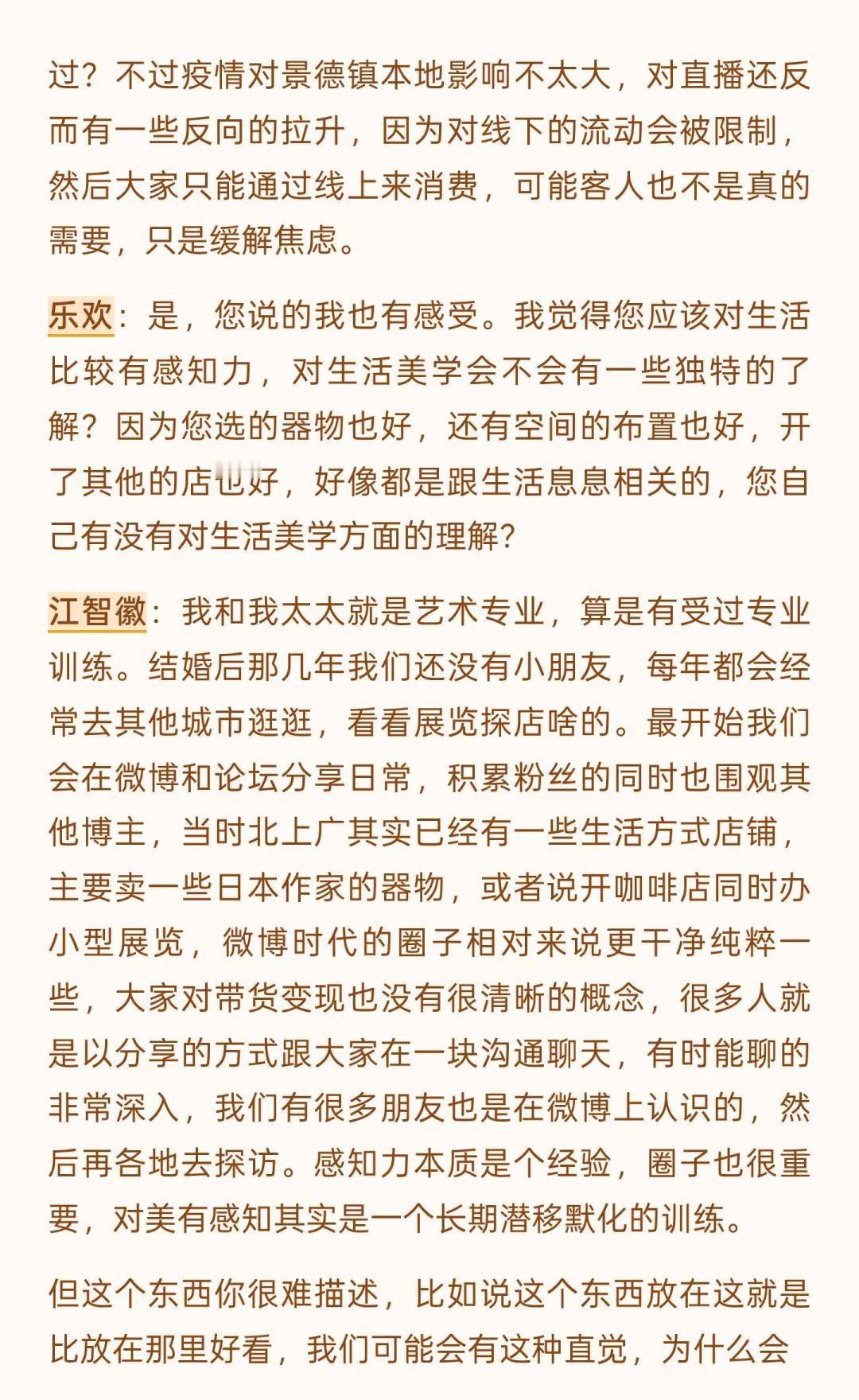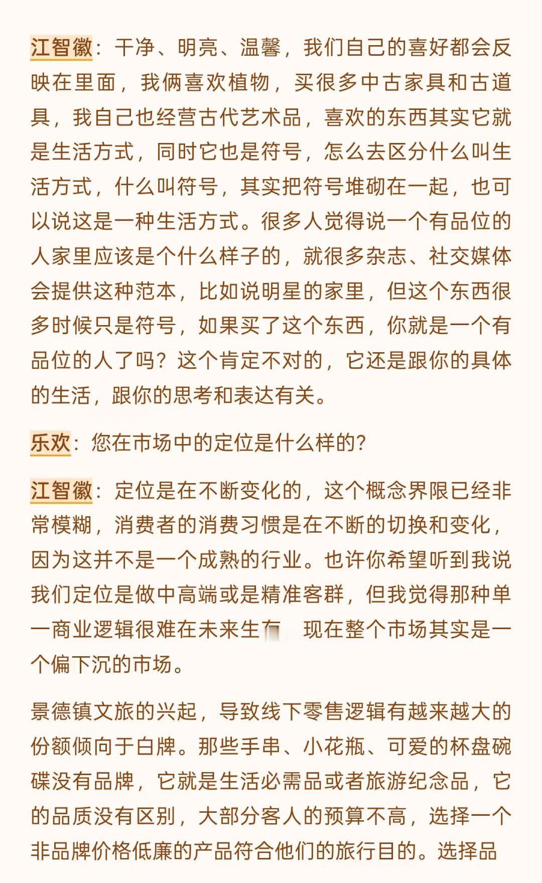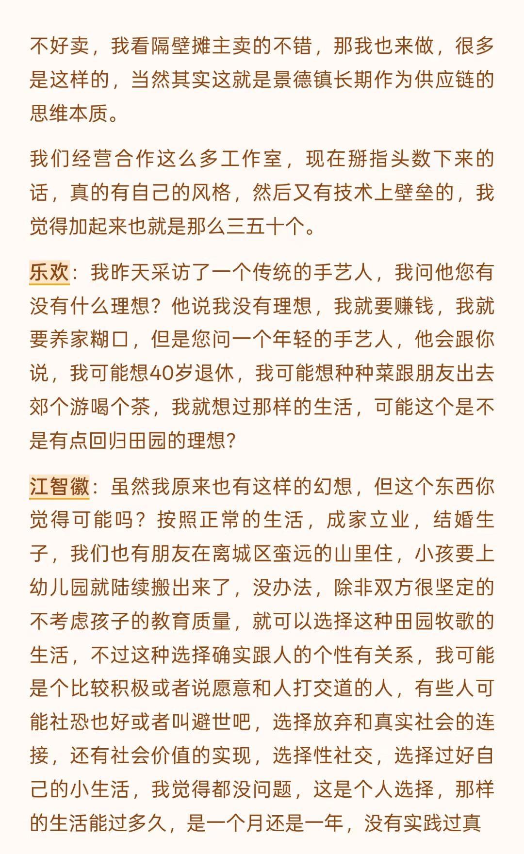 景德镇的变化是历史级别的(上) 文字是数月前和一位陶大博士生的问答式聊天录音整理,磨磨蹭蹭改了好些天,里面有一些暴论吧,但基本是我真实观察后的想法,当然很多尖锐的观点我不会写出来。 这一年来,行业的变化、城市的变化,包括我心态的变化都很大,作为一个经营在地品牌的本地人,适应环境变化是我目前最重要的工作之一。 没有什么比生存更是一个直接的问题,无论是个人还是一个团队,其实我有很多想写的东西,比如: 社交媒体在摧毁创作作者心态,个体潜能被算法镇压,数据大于创作、大于不确定性,生命感消失,设计和表达成为计算,平台流量决定了创作思路和方向。 创作本该是走走停停,甚至不是一条线性的路。但对于有人气的作者来说,所谓的风格成为枷锁,他们接受不了改变带来的后果。 行业材料商和基础设施提供者对于技术的研究比创作者更精进,看材料品牌的电商数据和店铺主推是了解时下流行趋势的直接窗口,如果材料商们下场生产链接客户,个体创作者的机会会越来越小。 … 不展开说了,这些只是团队内部的讨论时的一些碎碎念而已,下个月初我们管理团队会前往益子、东京和京都,看看商业,逛逛美术馆、找找品,也许会找到一些日本买手的合作,多看看小伙伴们总会有感触和自我迭代的,算是给内部的学习投资吧。 如果意识到变化到来,提升自己应对,是我自己的方法,对,把自己作为方法,也可以这么理解。 小蕾的一方庭 景德镇旅行 景德镇手作 景德镇探店 景德镇雕塑瓷厂 景德镇攻略 景德镇打卡 手作陶瓷 陶艺家手作