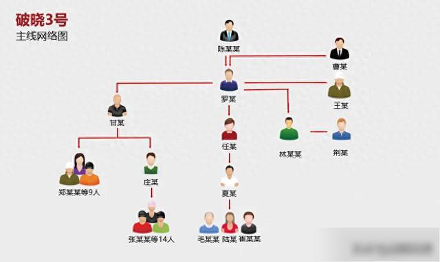 警方随即展开深挖彻查,逐步摸排出一个以甘某、罗某、王某、曹某、荆某、陈某为核心成员,层级繁多、结构复杂,涉及多个省市的犯罪网络。