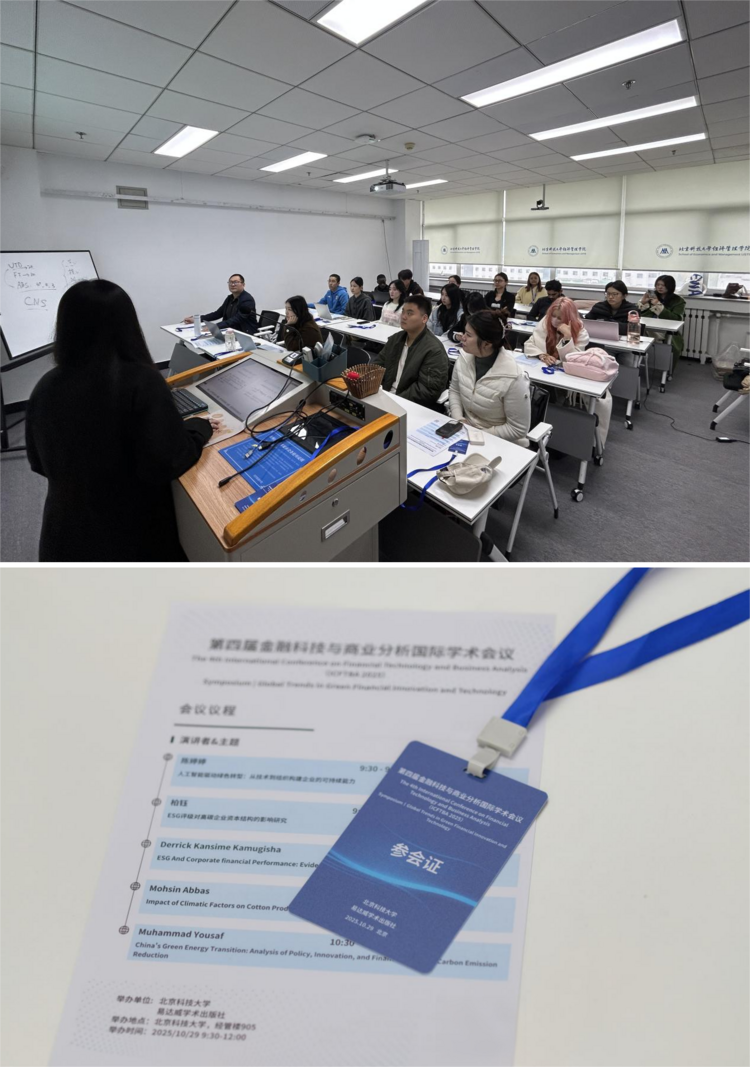 2025年10月29日上午,第四届金融科技与商业分析国际学术会议(CONF-FTBA2025)在北京科技大学经管楼905会议室成功举办。会议由北京科技大学与易达威学术出版社联合主办,来自国内外高校与科研机构的专家学者齐聚一堂,围绕金融科技、ESG(环境、社会和治理)与可持续发展等前沿议题进行了深入的分享与交流。