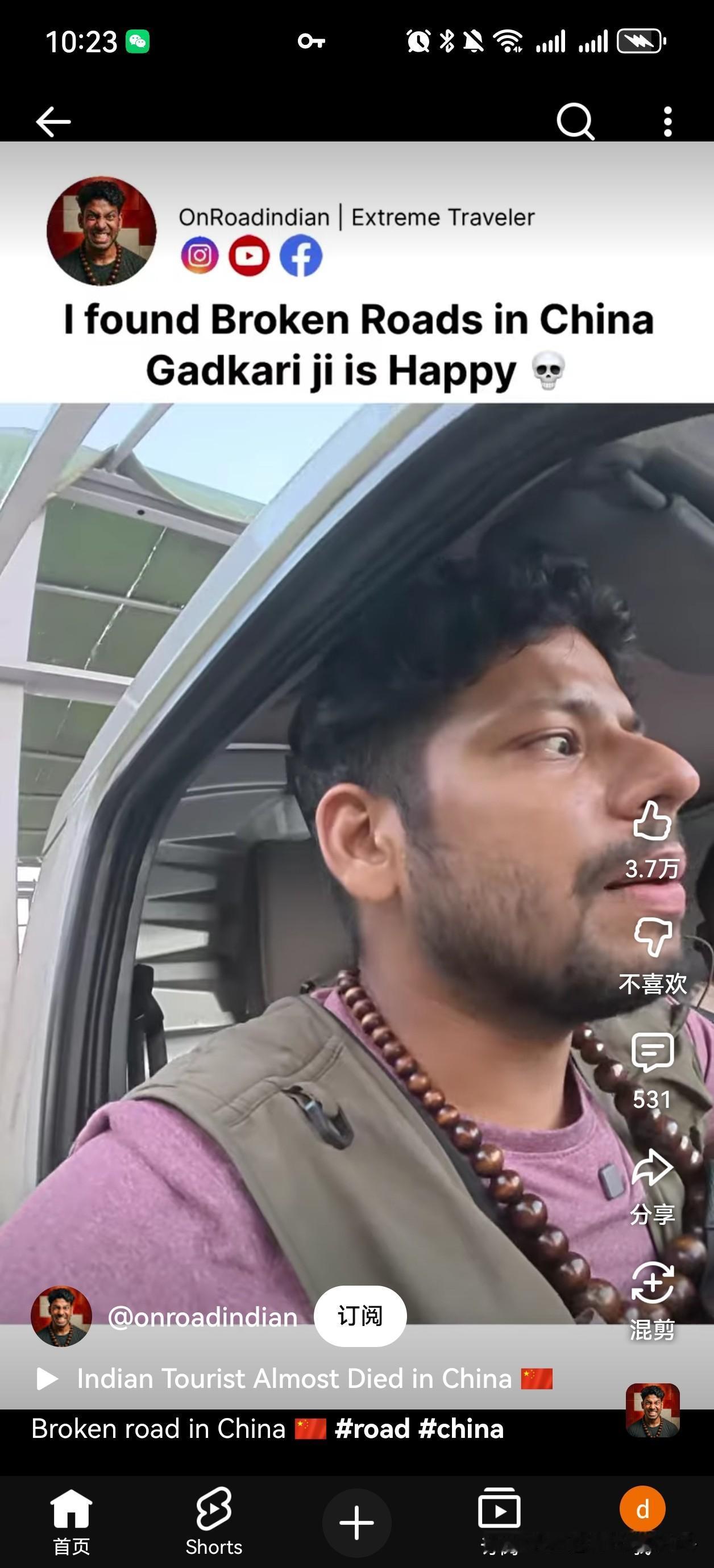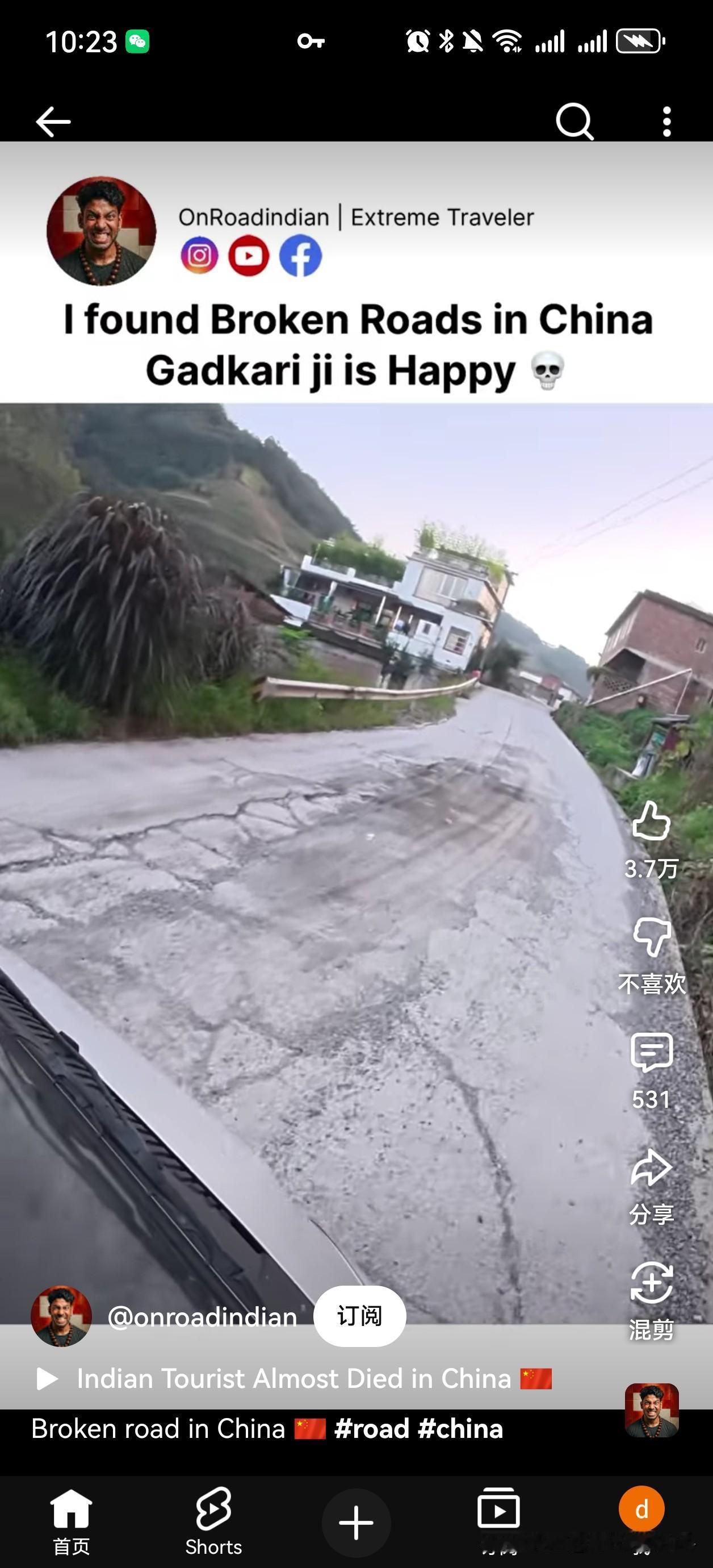 印度网红专门来中国找茬,说中国农村公路破碎不堪,没有印度的好!!!结果被评论区的印度网友直接整破防了,说中国的农村公路比印度的城市道路和高速公路好多了!!!意不意外,惊不惊喜。。