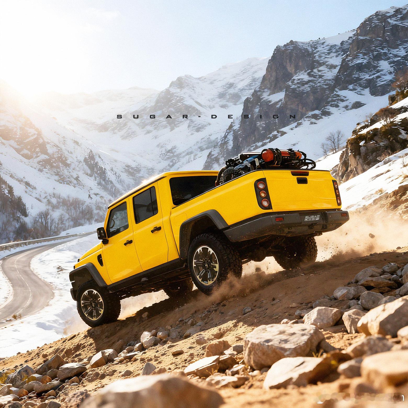 新车将基于212 T01打造,加长车身和轴距,提供一个巨大的货斗方便拉货。颇有些Jeep角斗士的风味。[doge]