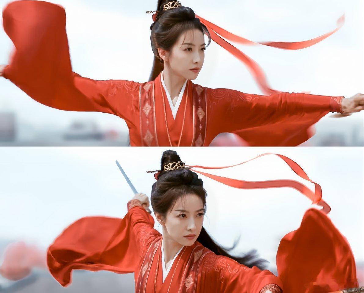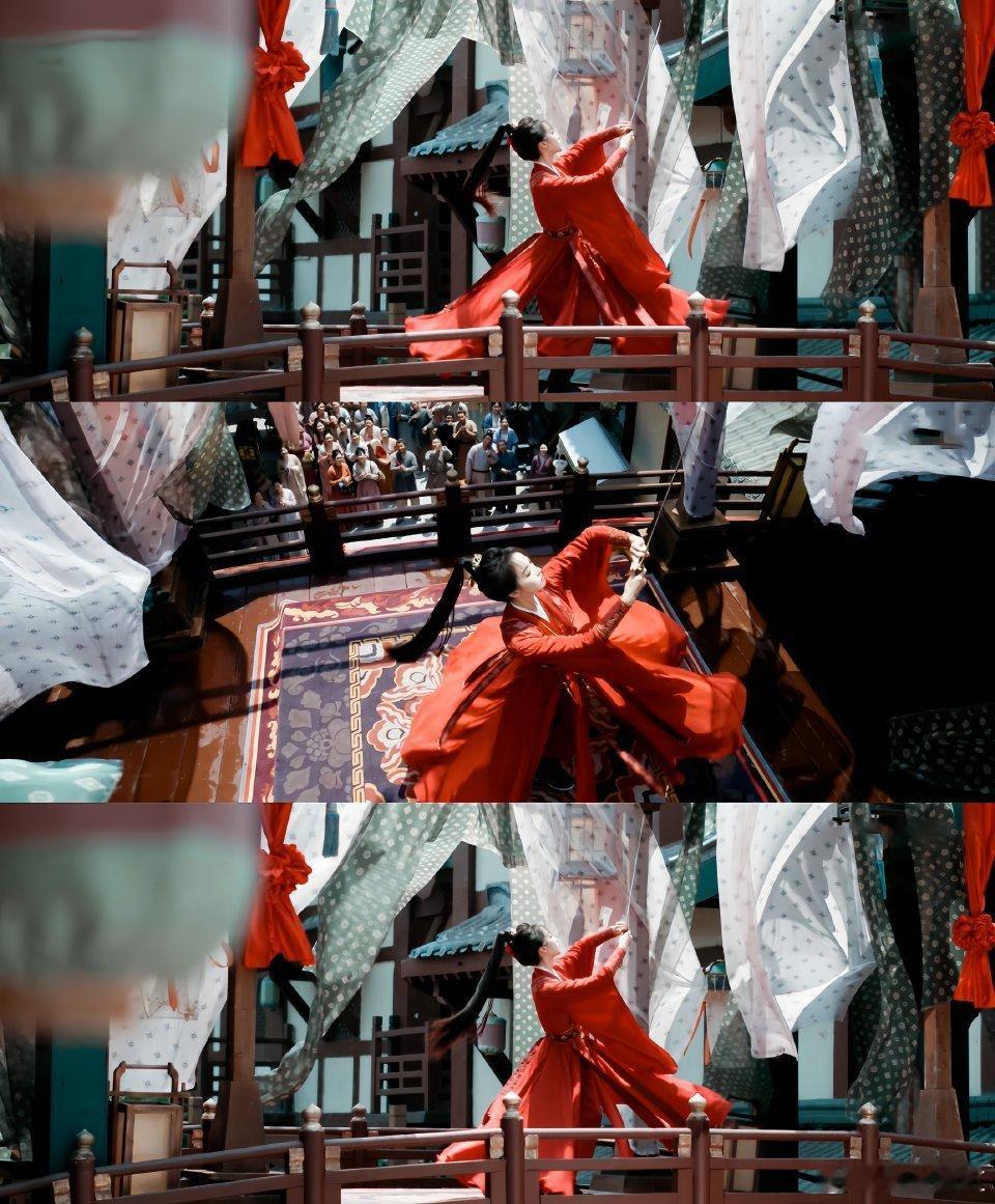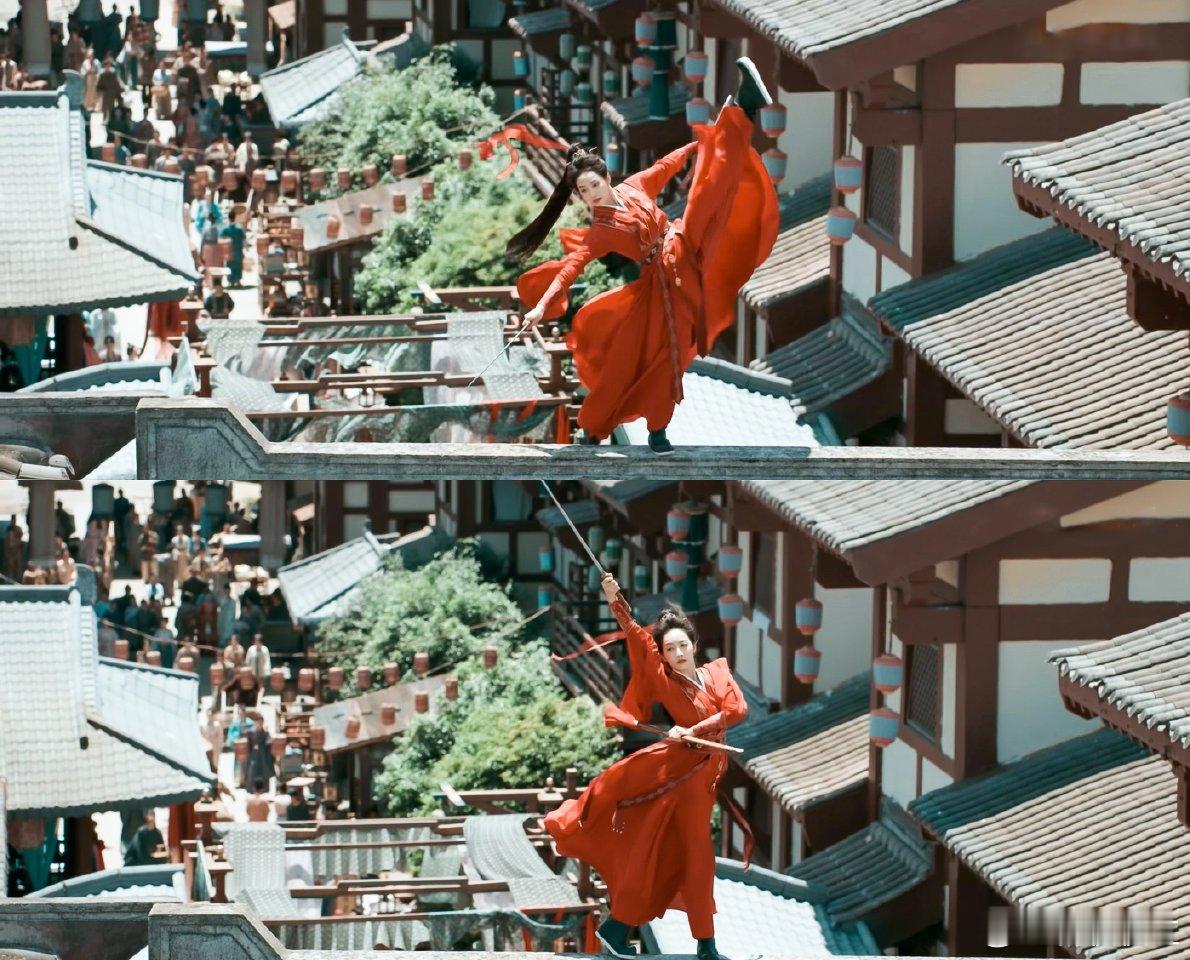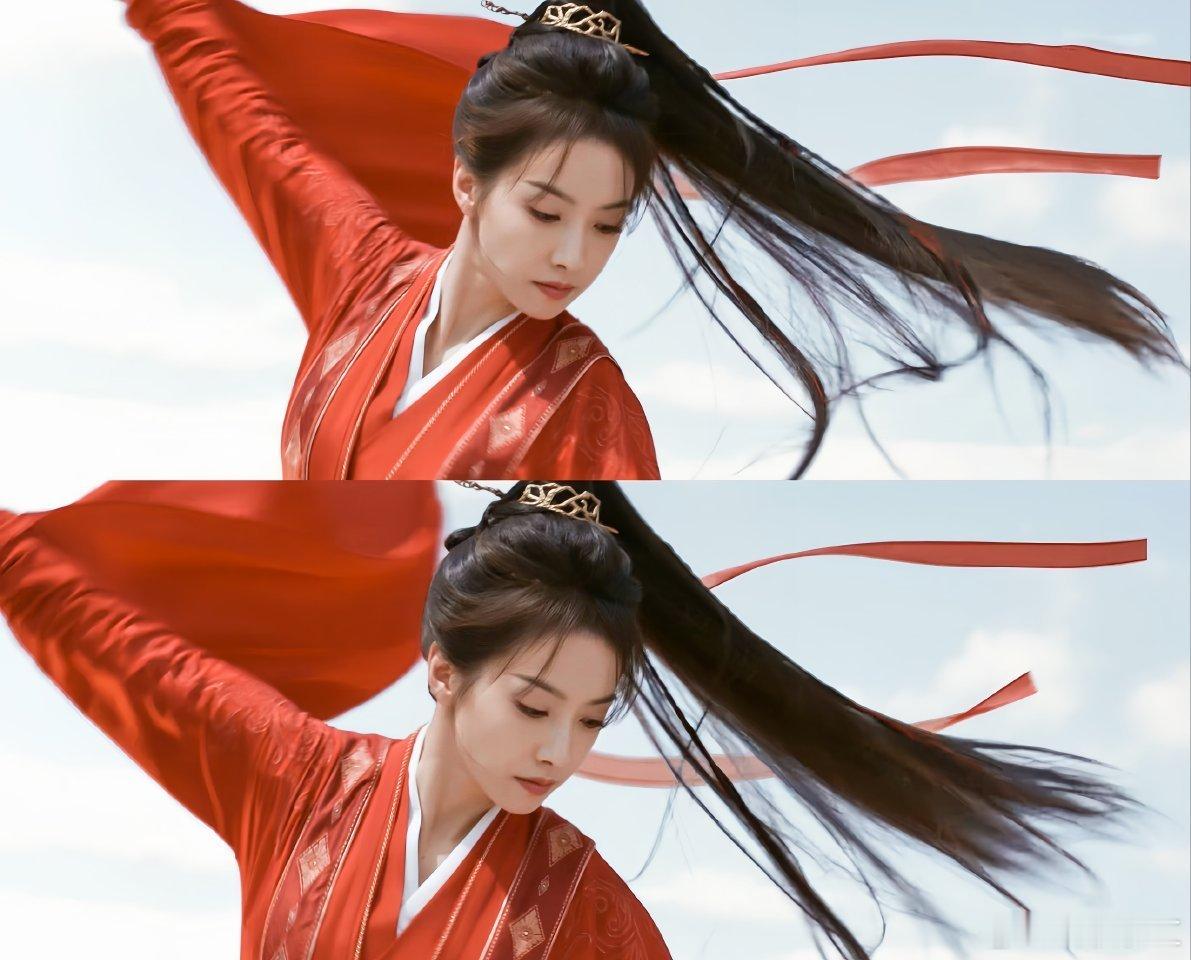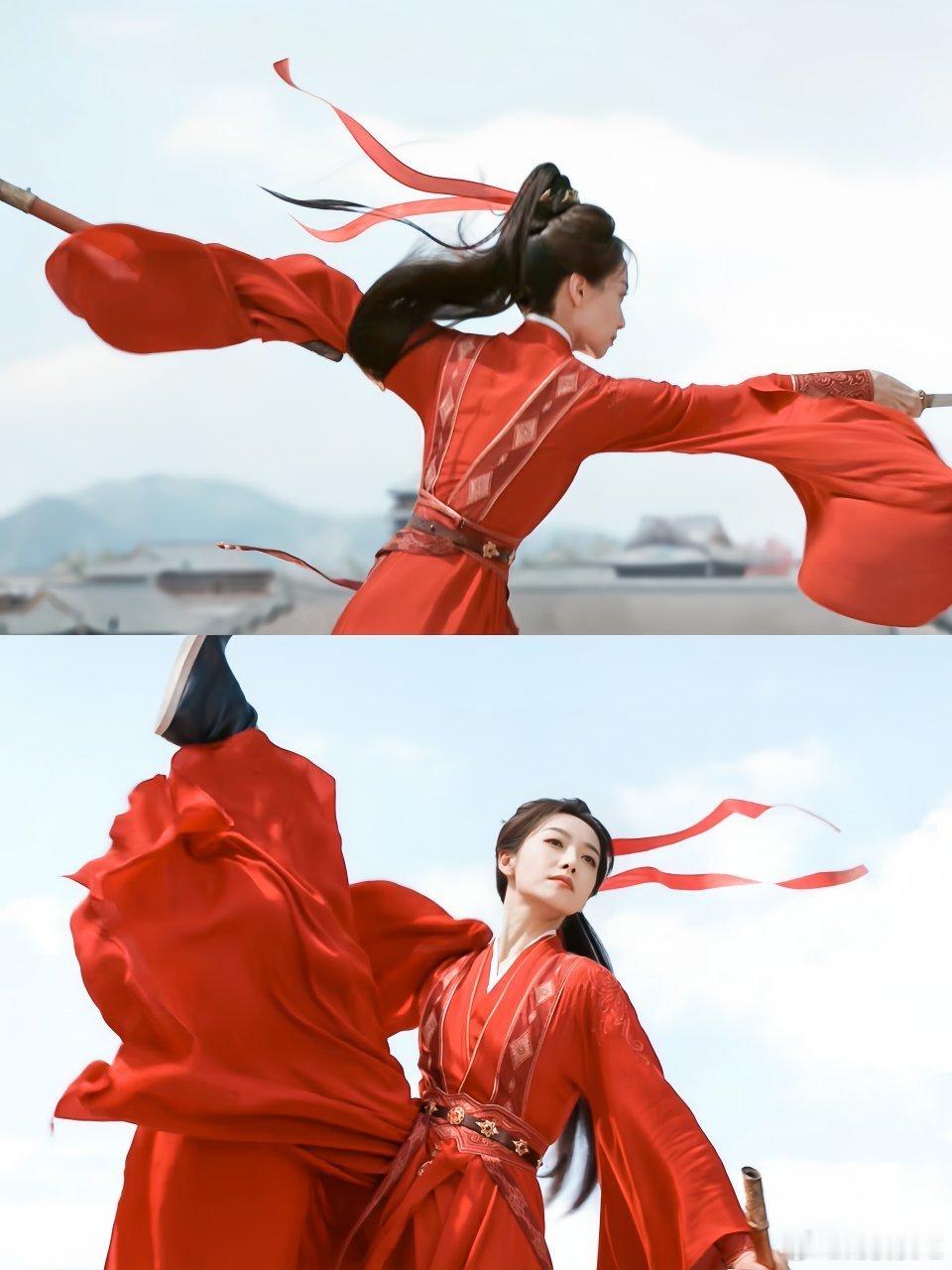 宋茜红衣舞剑直拍 红衣裹着侠气,剑光淬着惊艳!宋茜挥剑时的力度把控太绝,转身收剑