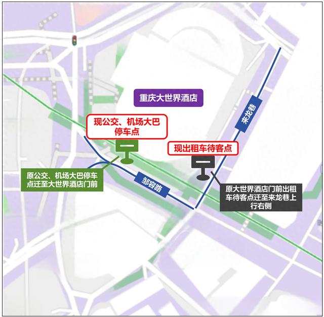 第1眼TV-华龙网讯(记者刘艳)今(31)日,记者从重庆交通执法总队直属支队渝中区大队了解到,为进一步规范解放碑大世界酒店出租车候客点,缓解因车辆集中停靠易引发的交通拥堵问题,11月1日起,该候客点调整至来龙巷上行右侧(原公交车和机场大巴停车点),请市民游客注意。