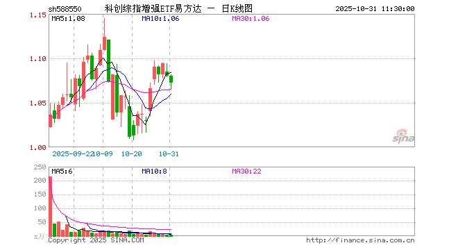 科创综指增强ETF易方达(588550)业绩比较基准为上证科创板综合指数收益率,管理人为易方达基金管理有限公司,基金经理为殷明,成立(2025-08-27)以来回报为7.86%,近一个月回报为-2.76%。