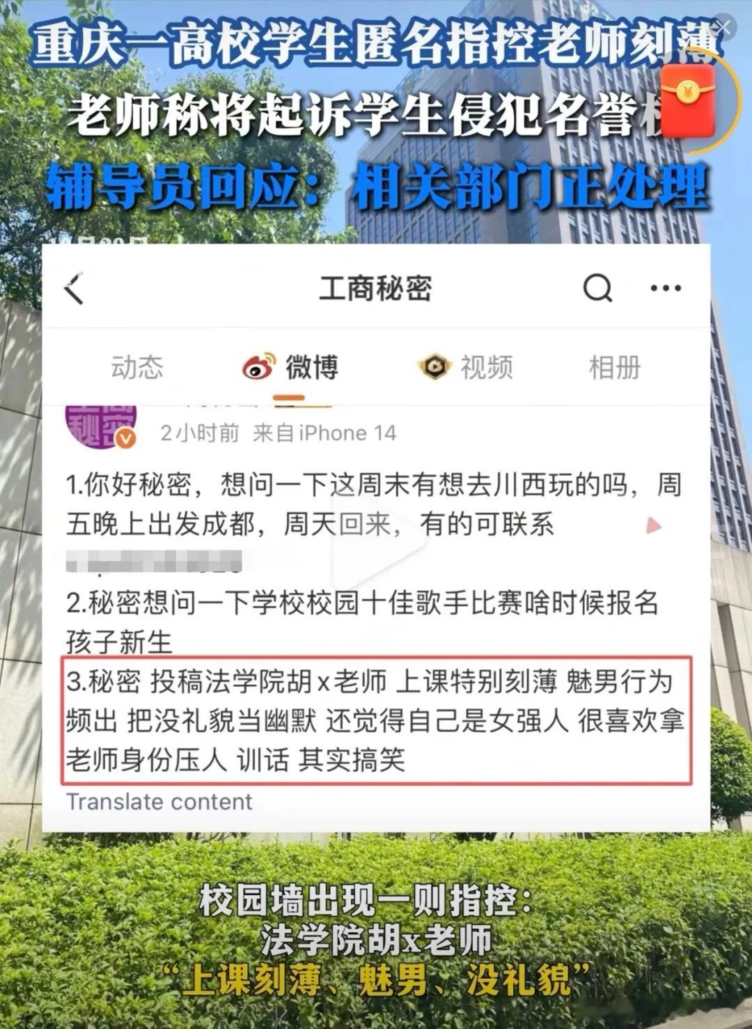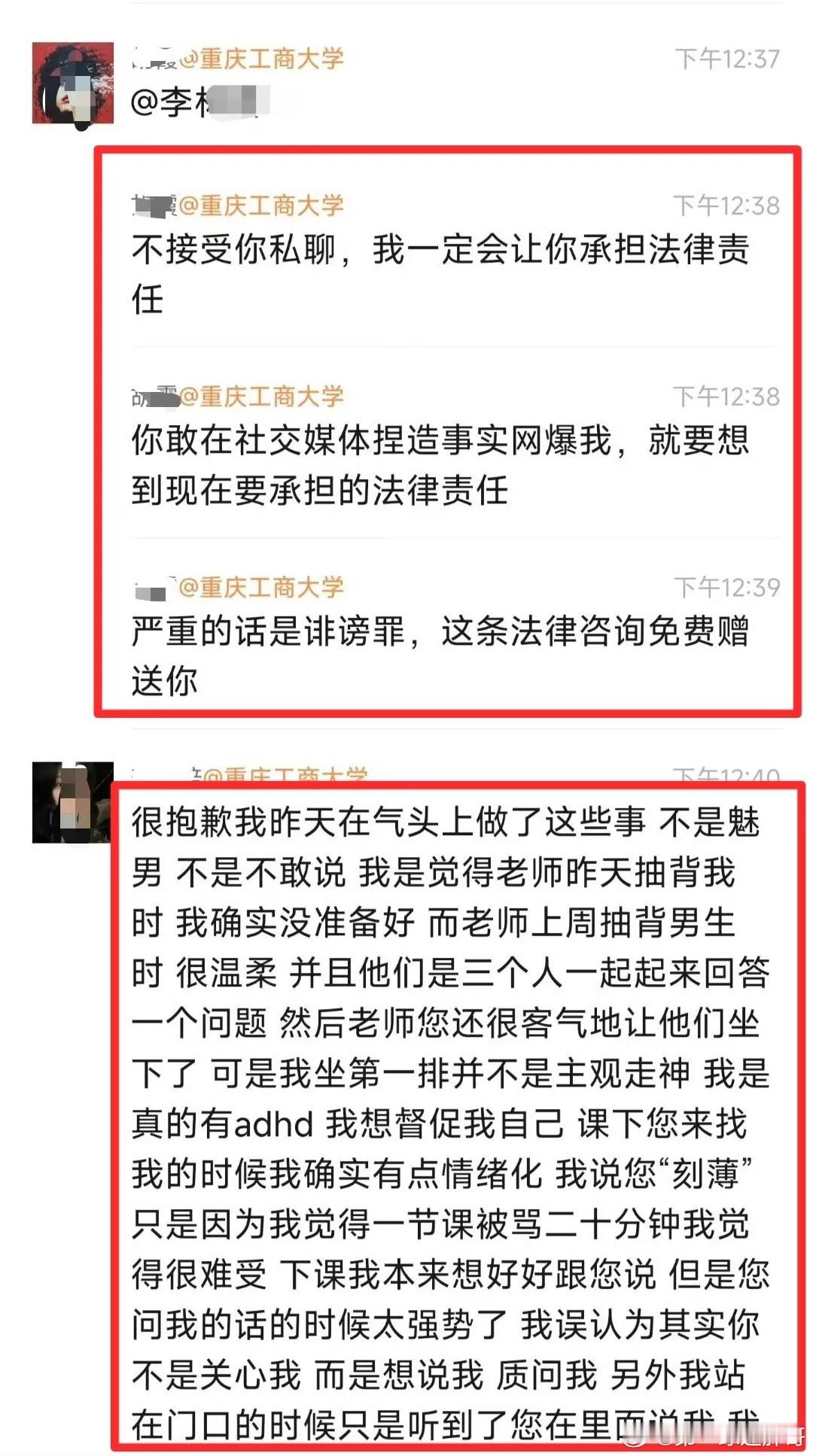 重庆一高校学生匿名指控老师刻薄 重庆工商大学女老师被女生指责刻薄、媚男,全过程曝光,女生将被起诉