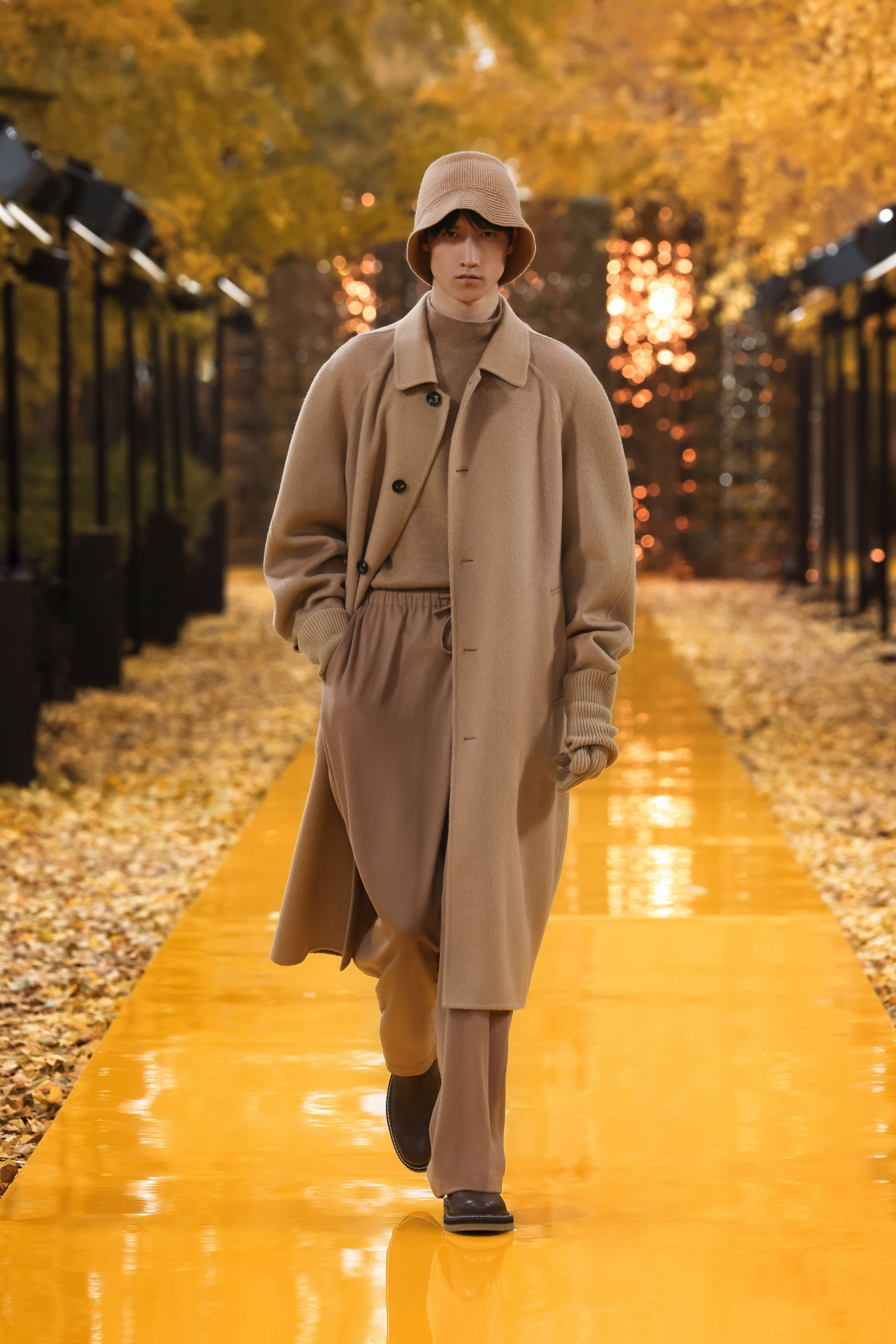 清晰的男 、女装系列架构 ,让每个章节都代表一种兴之所至的生活态度与着装语境。而贯穿始终的 ,是ERDOS对于针织工艺现代性探索的实验精神。以北京之秋的丰饶与诗意为底色 ,通过对针织语言的熟稔与对材质本源的探索共赏这幅流动画卷。