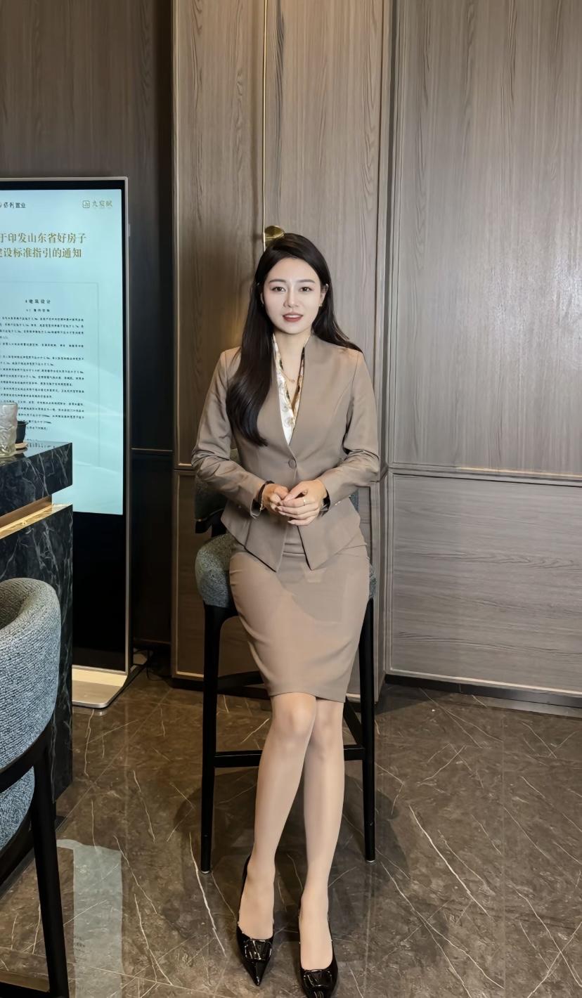 职场优雅穿搭指南:简约西装裙搭配高跟鞋,尽显干练气质!灰色西装裙套装 西装裙穿搭展示 轻奢职业西装裙