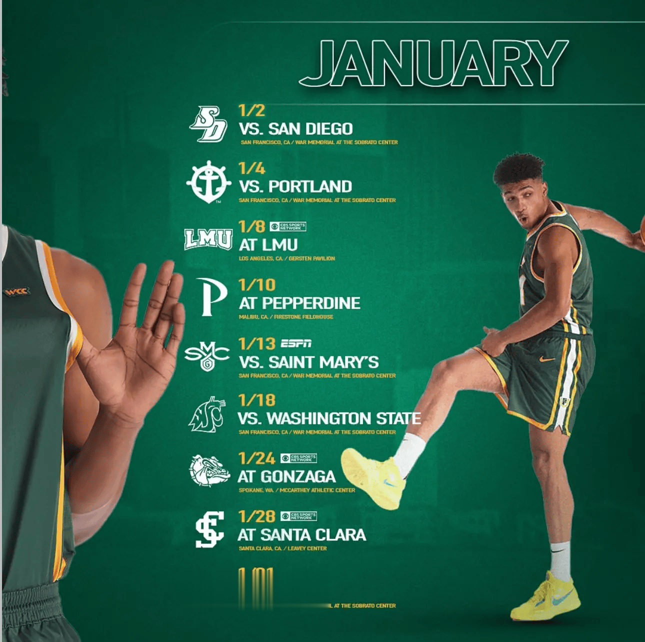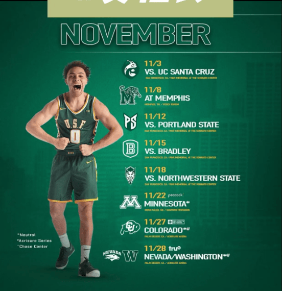 配文:旧金山大学赛程表。旧金山大学新的常规赛季即将开始!请大家关注中国球员王俊杰和赵维伦精彩的表现!拭目以待!GoDons!