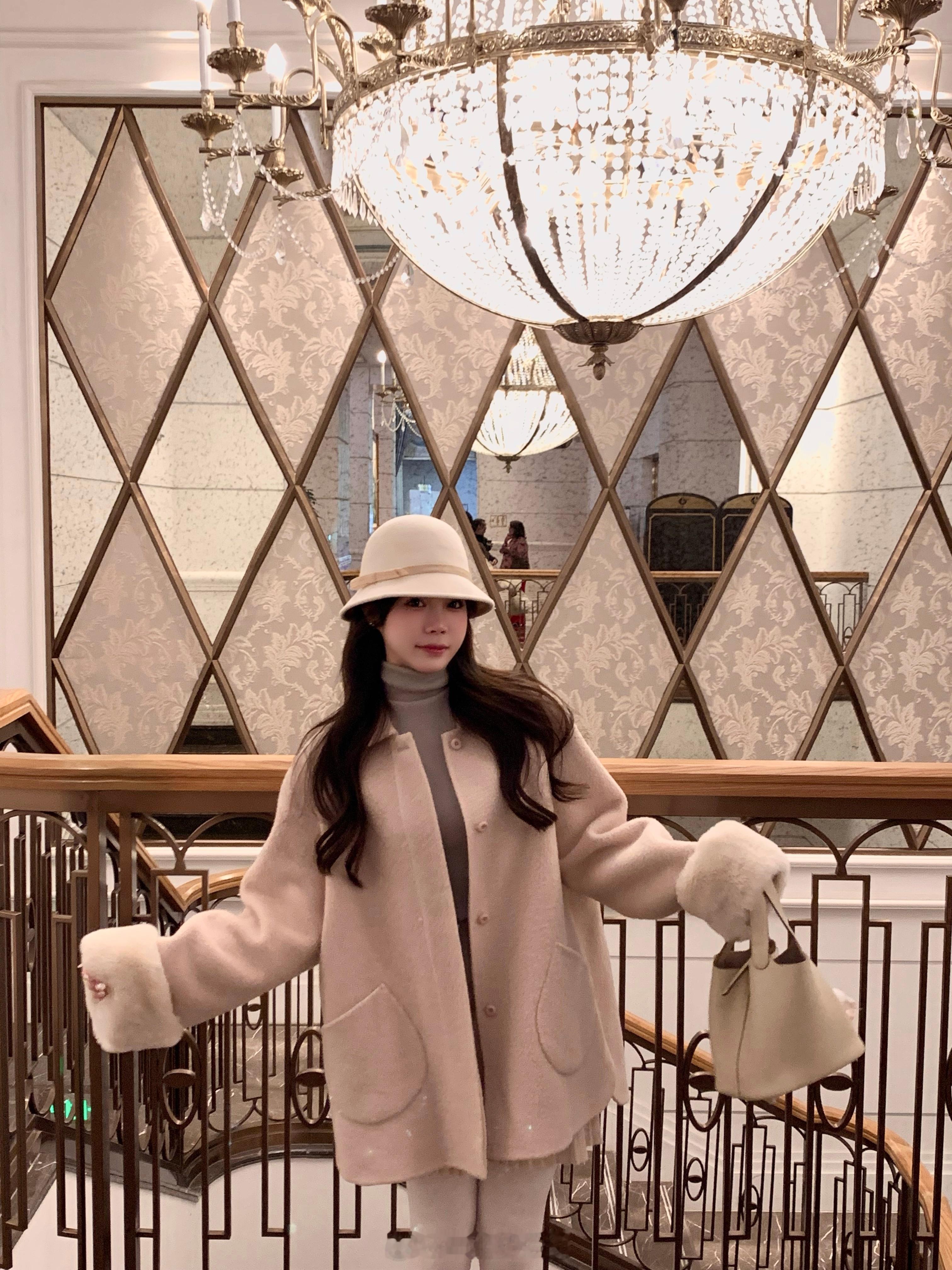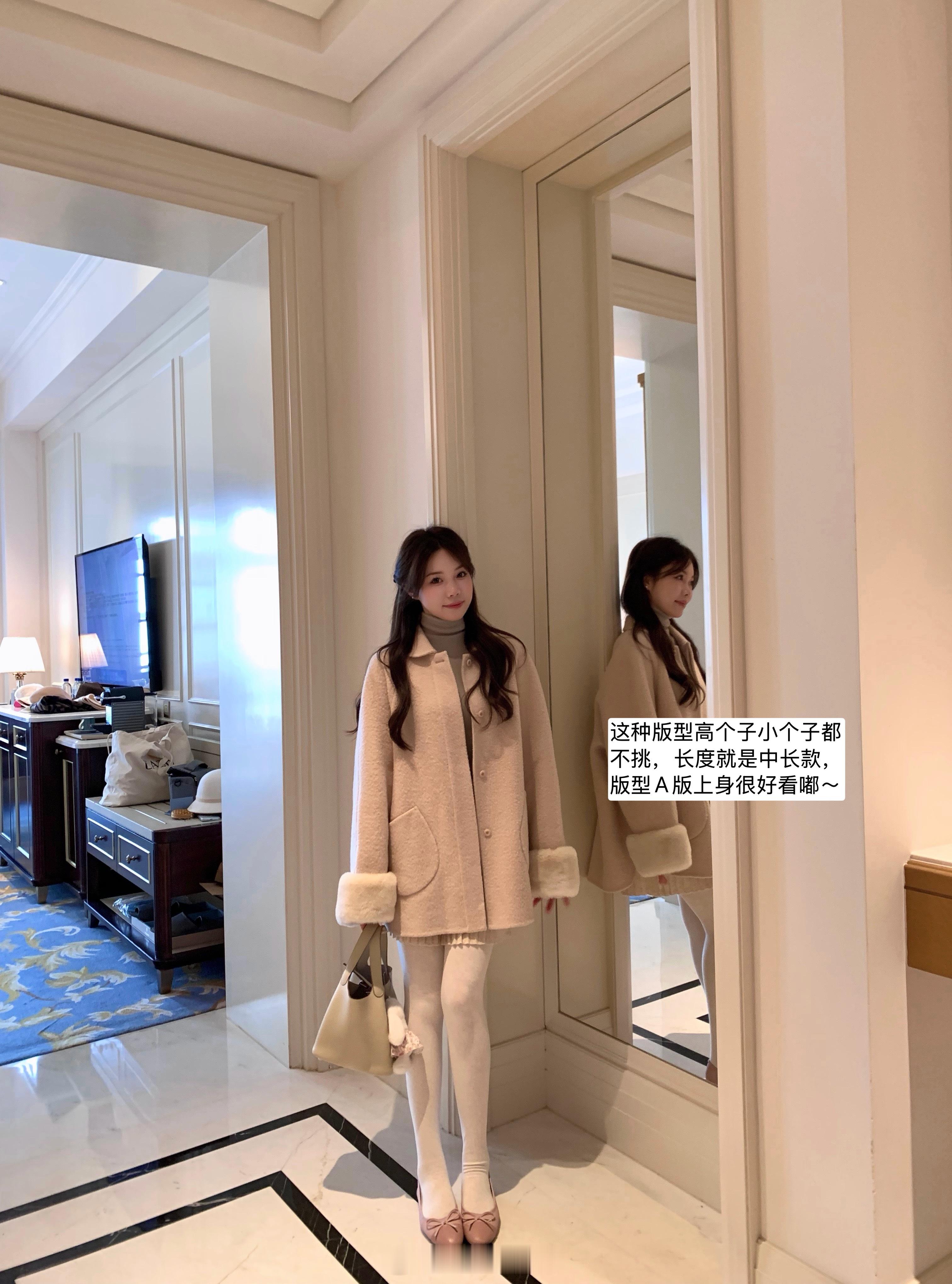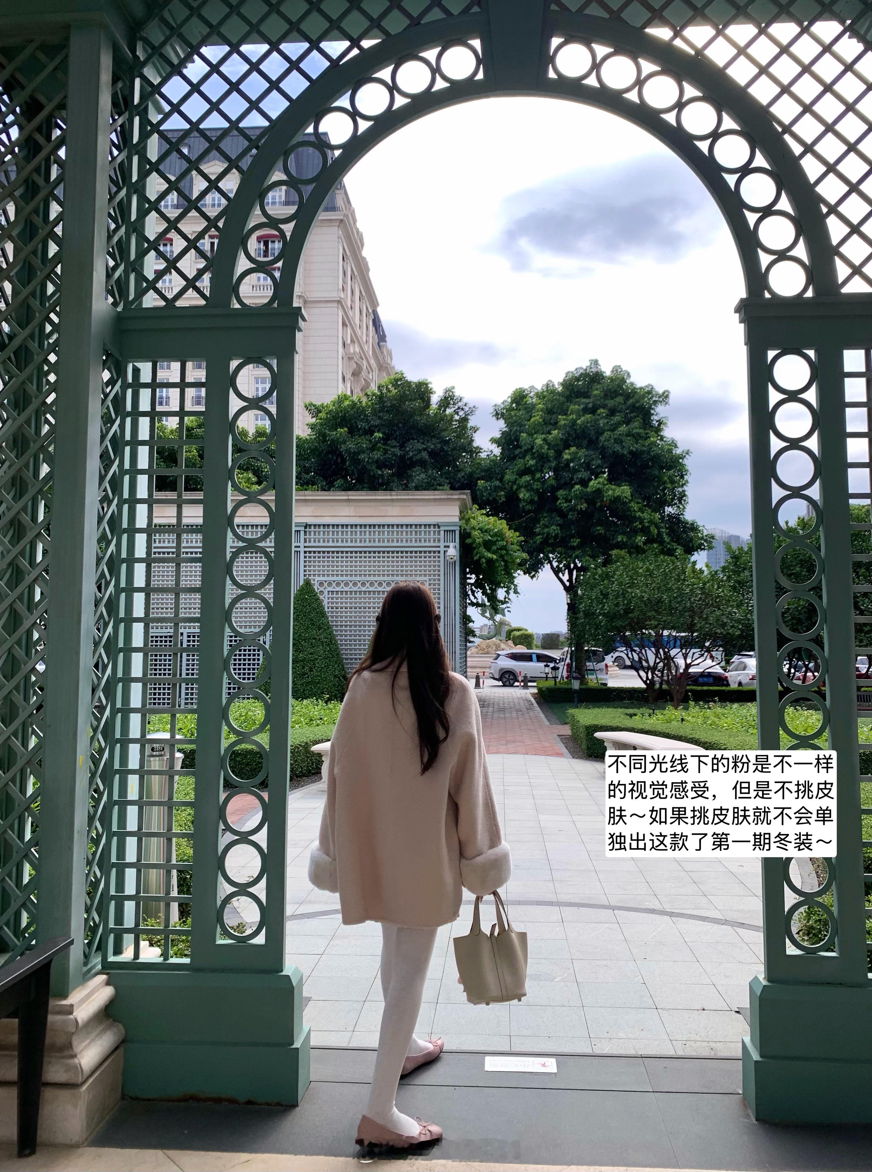今年的第一款,用的圈圈羊毛面料,更厚实色系更淡雅的调调,选的很好的茱萸粉色,我觉得是完全不挑肤色的粉色系了。很难遇到低饱和度的粉色大衣,这款完全喜欢。