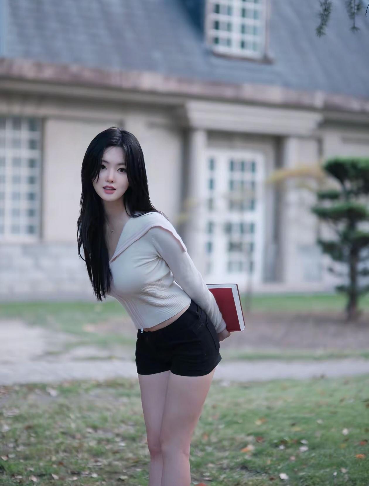 她一身简约白T搭配破洞牛仔裤,手提精致小包,休闲随性中透着优雅,日常出行也能轻松