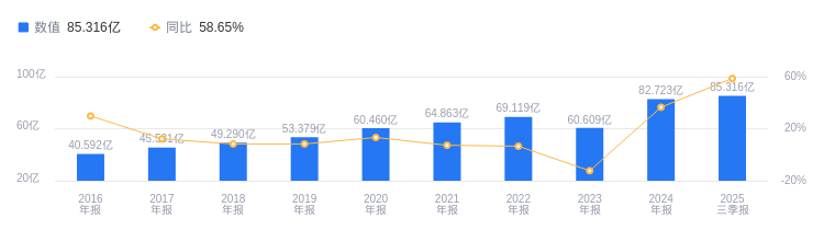 偿债能力方面,2025年三季度光迅科技资产负债率为39.94%,高于去年同期的34.81%,也高于行业平均的38.12%。从盈利能力看,当期毛利率为23.14%,较去年同期的23.71%略有下降,且低于行业平均的30.08%。