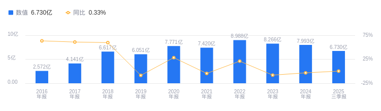 2025年三季度,涪陵榨菜资产负债率为6.62%,去年同期为6.01%,低于行业平均的20.91%,偿债能力方面表现良好,财务风险较低。从盈利能力看,当期毛利率为53.73%,去年同期为52.63%,高于行业平均的34.44%,显示出较强的盈利水平。