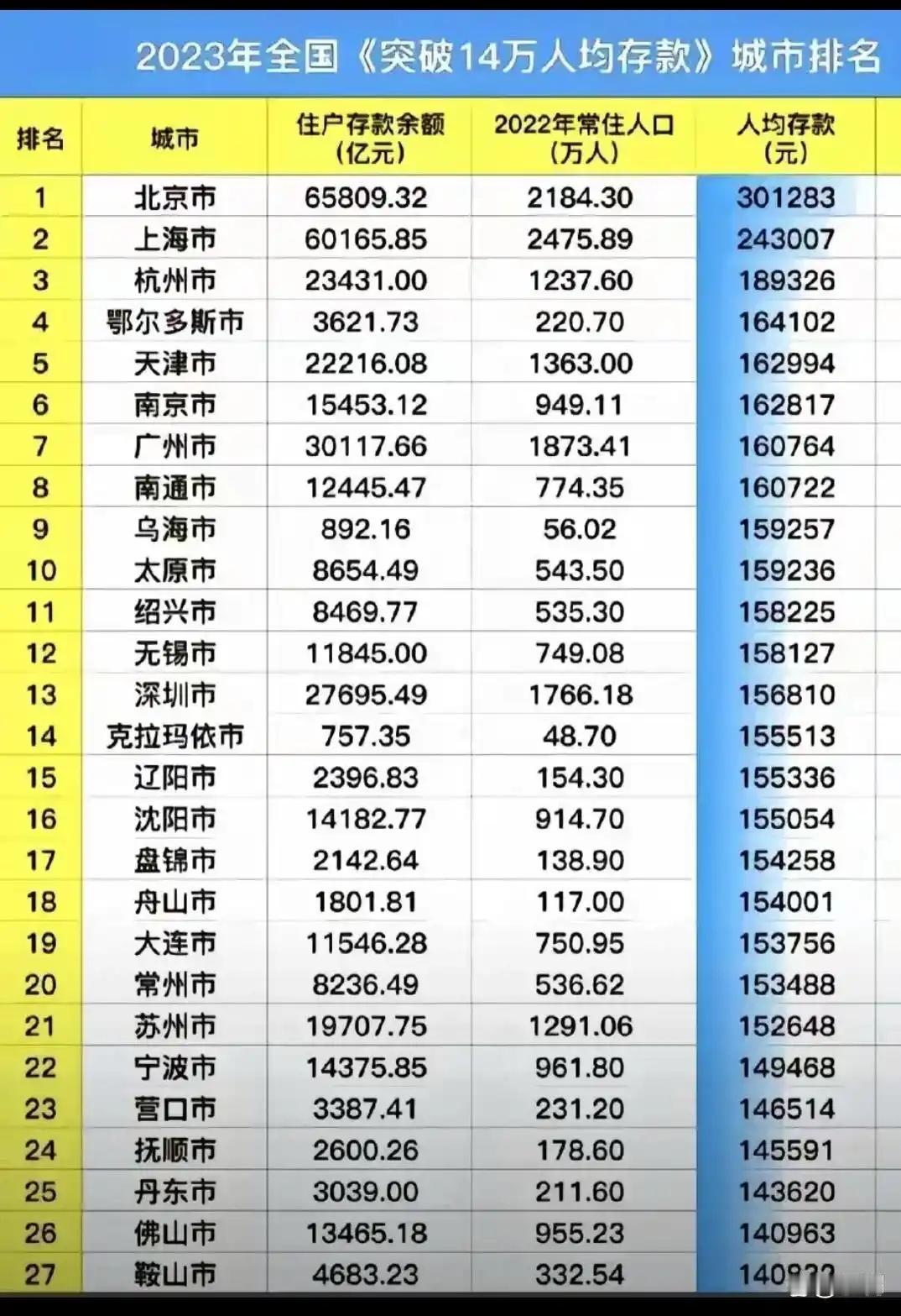 34城存款超万亿:数字亮眼的背后,藏着普通人最真实的生存账本 2024年末,34个城市住户存款破万亿的榜单一出炉,不少人盯着北京超7万亿、上海近6万亿的数字惊叹“有钱”,可刷到“人均存款超10万”时,评论区满是“拖后腿了”的自嘲——这串亮眼数据的背面,藏着太多人的生存真相。 先看这份榜单的“潜台词”:存款多少从来跟着资源走。北京、上海攥着全国超40%的头部金融机构,陆家嘴、金融街的高薪人群撑起了储蓄大盘,光这两座城市的存款就占34城总额的近30%。杭州能凭20.2万的人均存款挤入前三,靠的是6305亿元的数字经济增加值托底,这才是“产业强则储蓄厚”的硬道理。可光鲜之下差距惊人:西安虽排第十,人均存款12.3万还不到北京的零头,本质是产业结构的鸿沟在作祟。 更扎心的是“被平均”的真相。西南财大的数据戳破幻觉:前20%的家庭握着重64%的储蓄,底部40%家庭只占8%,而超70%的人月收入没到个税起征点5000元。年轻人在“高房租+高支出”里月光负债,60岁以上老人却靠着50%-60%的储蓄率成为存钱主力,这种割裂比数字更真实。 为啥大家宁愿让钱“躺”在银行?说到底是“安全感”不够。疫情留下的“伤痕效应”还在,应急储备金标准从3个月提到6-12个月成了共识。14.7%的青年失业率下,白领们坦言“保住存款比享受重要”;房产市值缩水30%的杭州业主,把储蓄比例从30%提到50%避险。更别说理财、股市不给力,2024年偏股型基金平均收益-4.7%,相比之下,哪怕存款利率进入“1时代”,也是“稳稳的幸福”。 有人说这是“保守”,可谁愿跟钱过不去?年轻人提前还房贷,中年人把20-50万存成3-5年定期,老人攒钱应对养老医疗,每笔存款都是对生活的底气储备。 这34城的万亿存款,不是“有钱没处花”的闲置,而是普通人对抗不确定性的盾牌。你家的存款是应急储备还是长期规划?评论区聊聊那些“不敢乱花”的理由~存款 人均存款标准