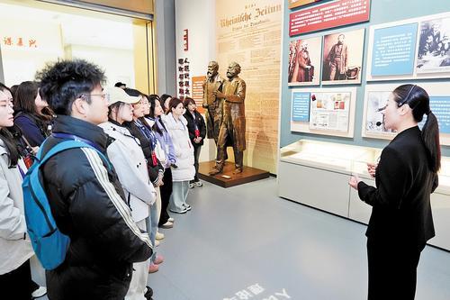 10月23日,河北经贸大学师生在人民代表大会制度在河北的探索与实践历程展馆参观。记者刘冰洋摄