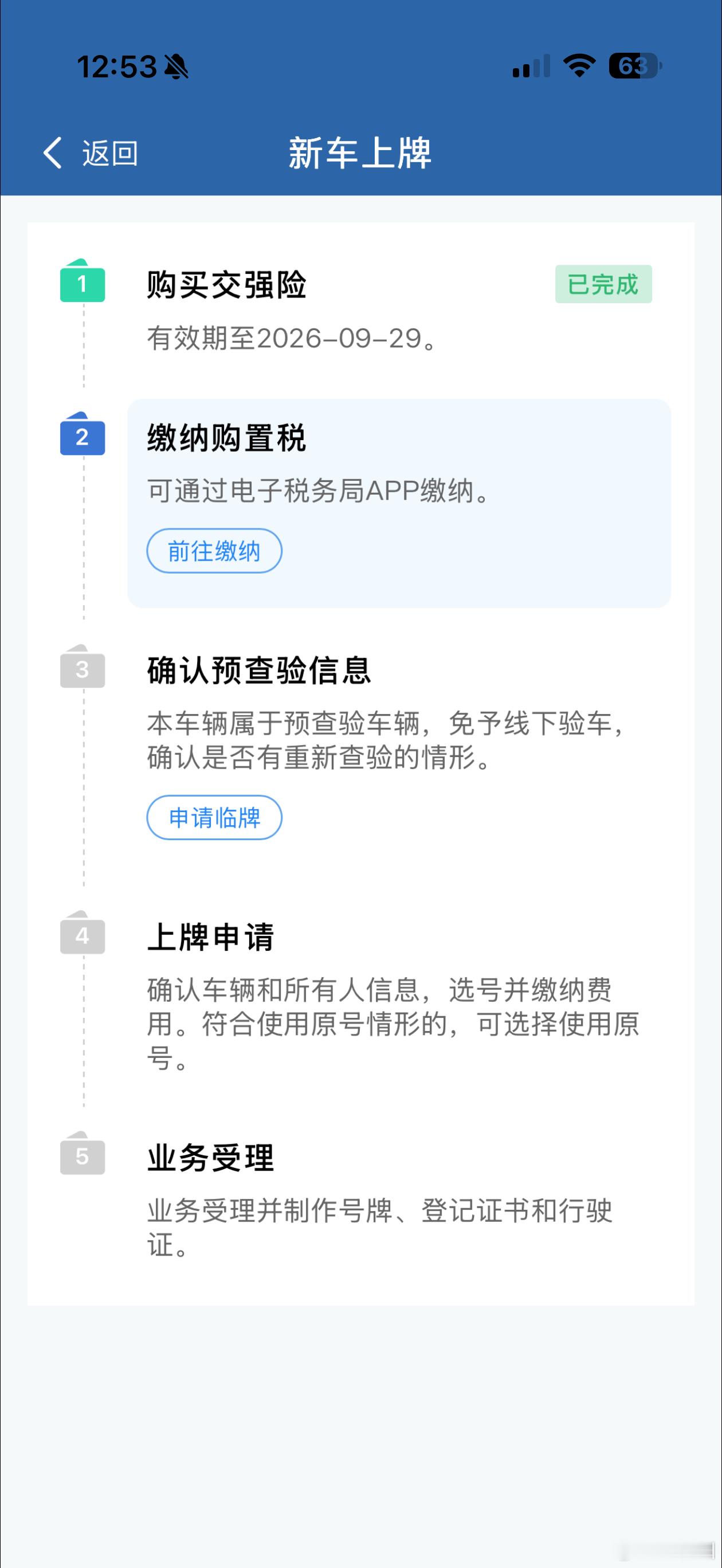 目前,12123已更新线上“新车上牌”功能,