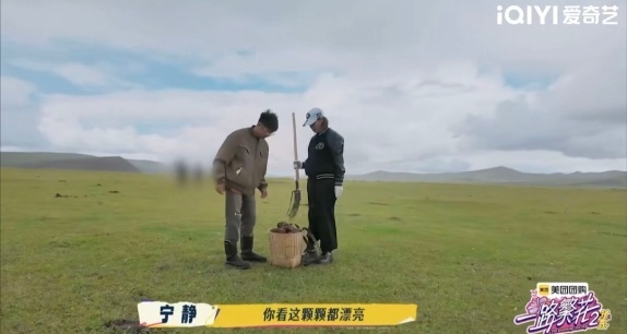 宁静捡个牛粪也要看颜值 蹲在田埂上左挑右选,指着一块圆润的念叨“这颜值能打”,嫌弃旁边歪瓜裂枣的“配不上我捡”,逗得众人直笑。