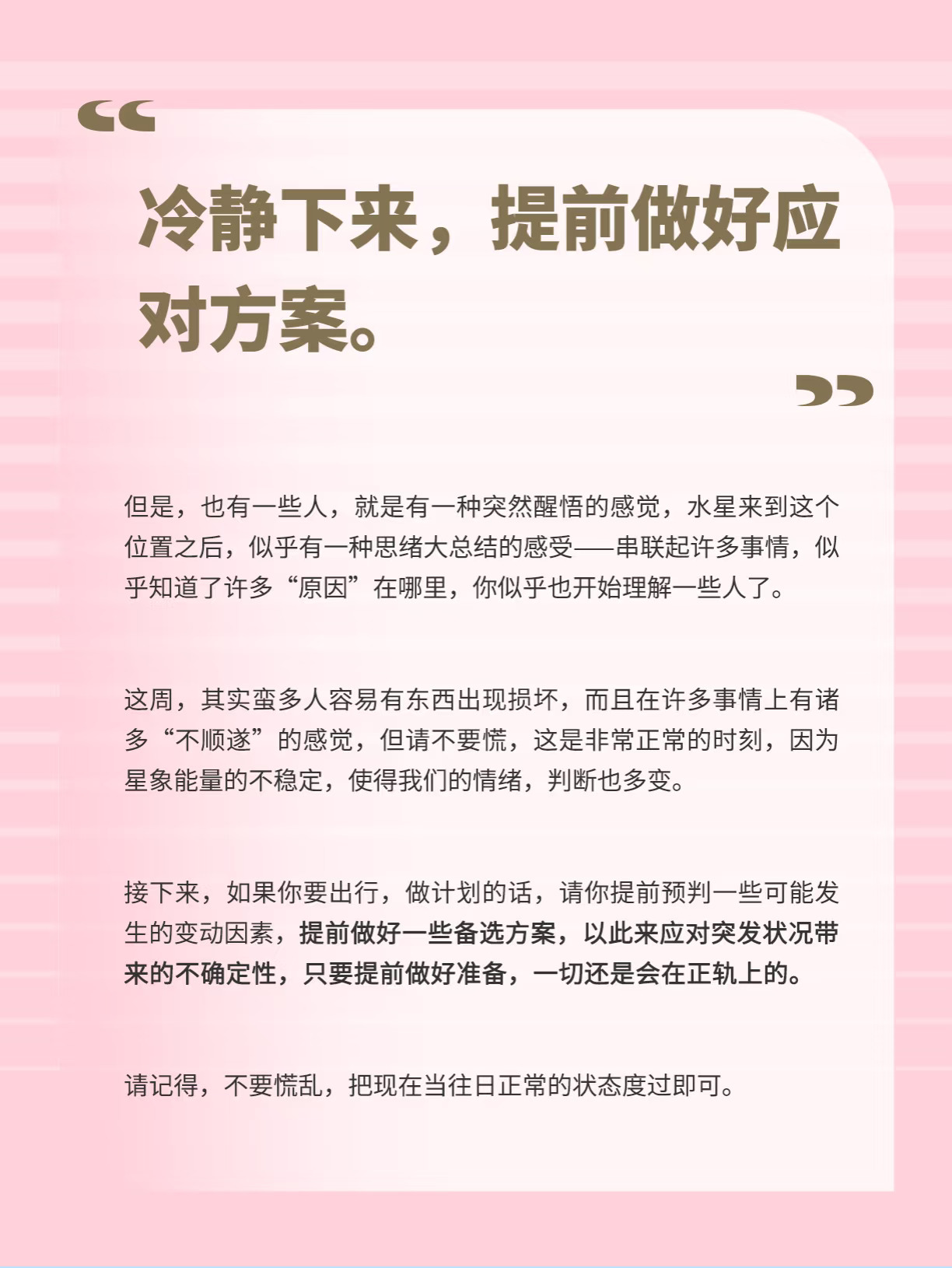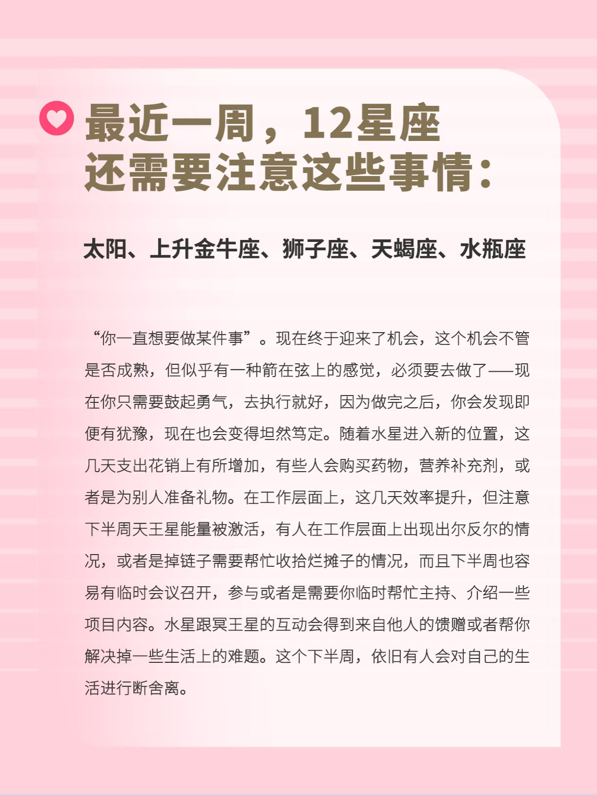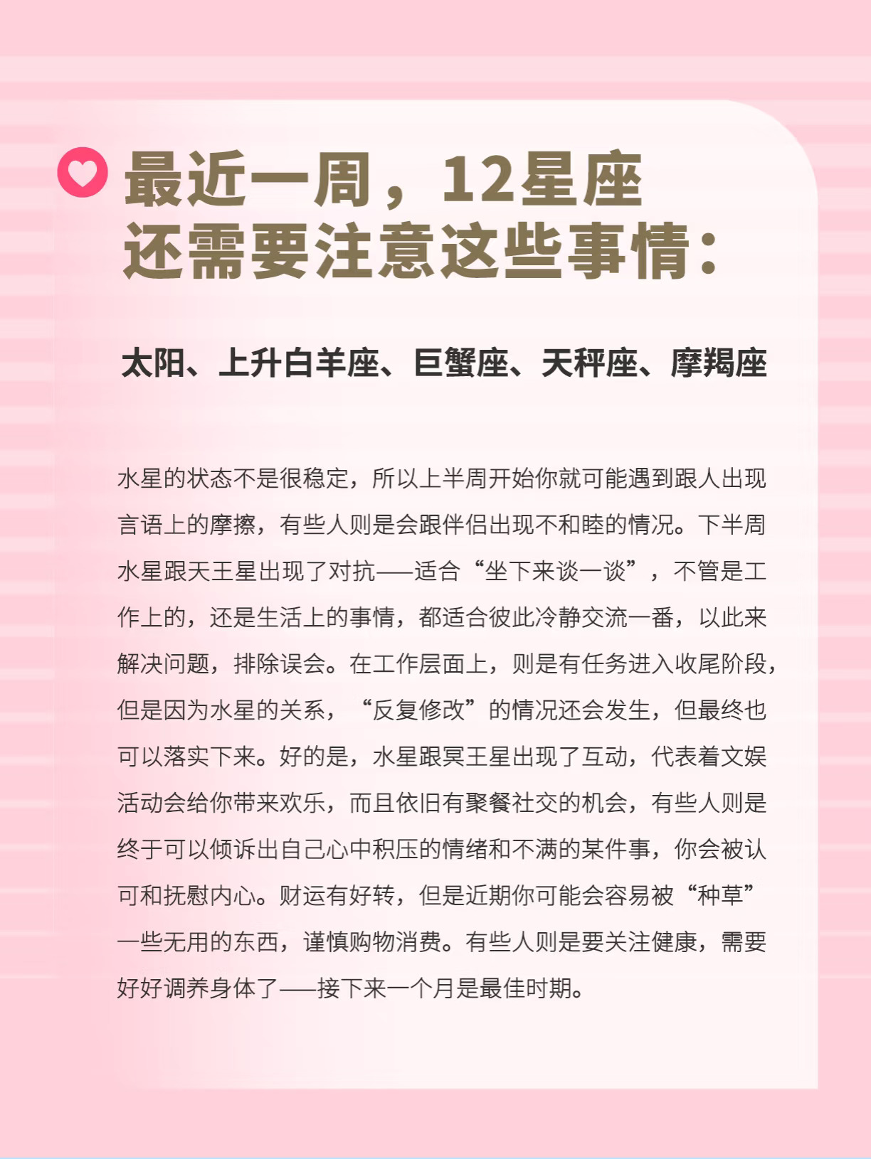 本周剩余几天至下周二期间,12星座还需要注意这些事情:(阅读图片)