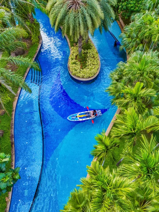 公区有超多类型的泳池,最经典的就是河道泳池,划着桨板穿越在椰林里,体验感真的拉满。房间特别宽阔,住的很舒服。