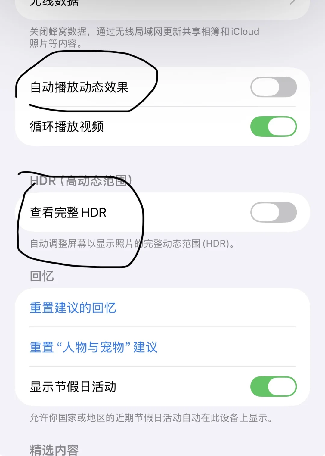 iPhone17拍照完在相册看会自动变亮跟磨皮,live 没法看 我全网地毯搜索找到这个办法真的有用!原来是可以设置的! 在设置里打开相册把圈出来的关掉就可以了!![自拍R]