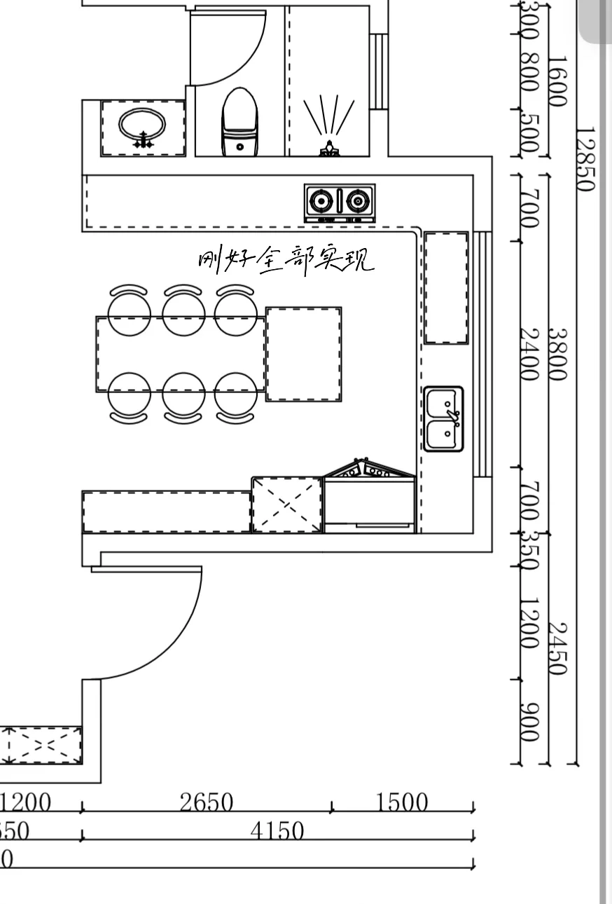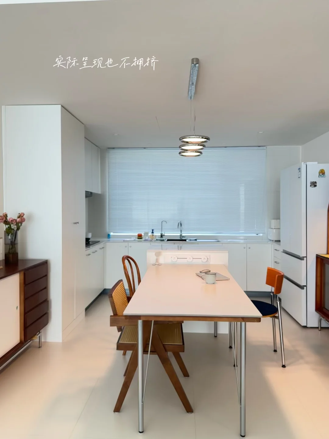 如果你家也是开间满足3.8米以上的厨房,真的很建议这样的布局呀,介意油烟的也可以多加一层轨道推拉门,完美和餐厅隔开
