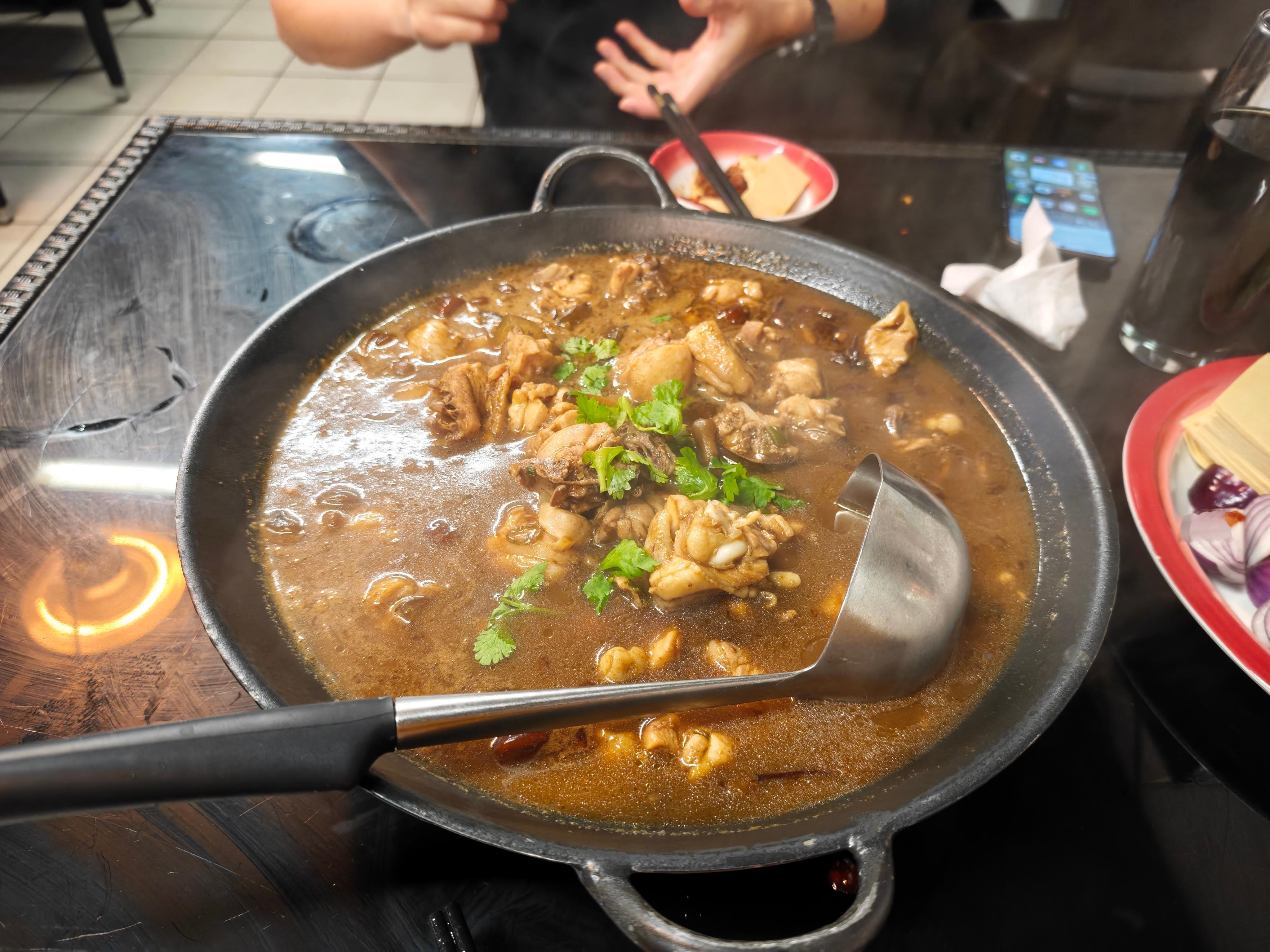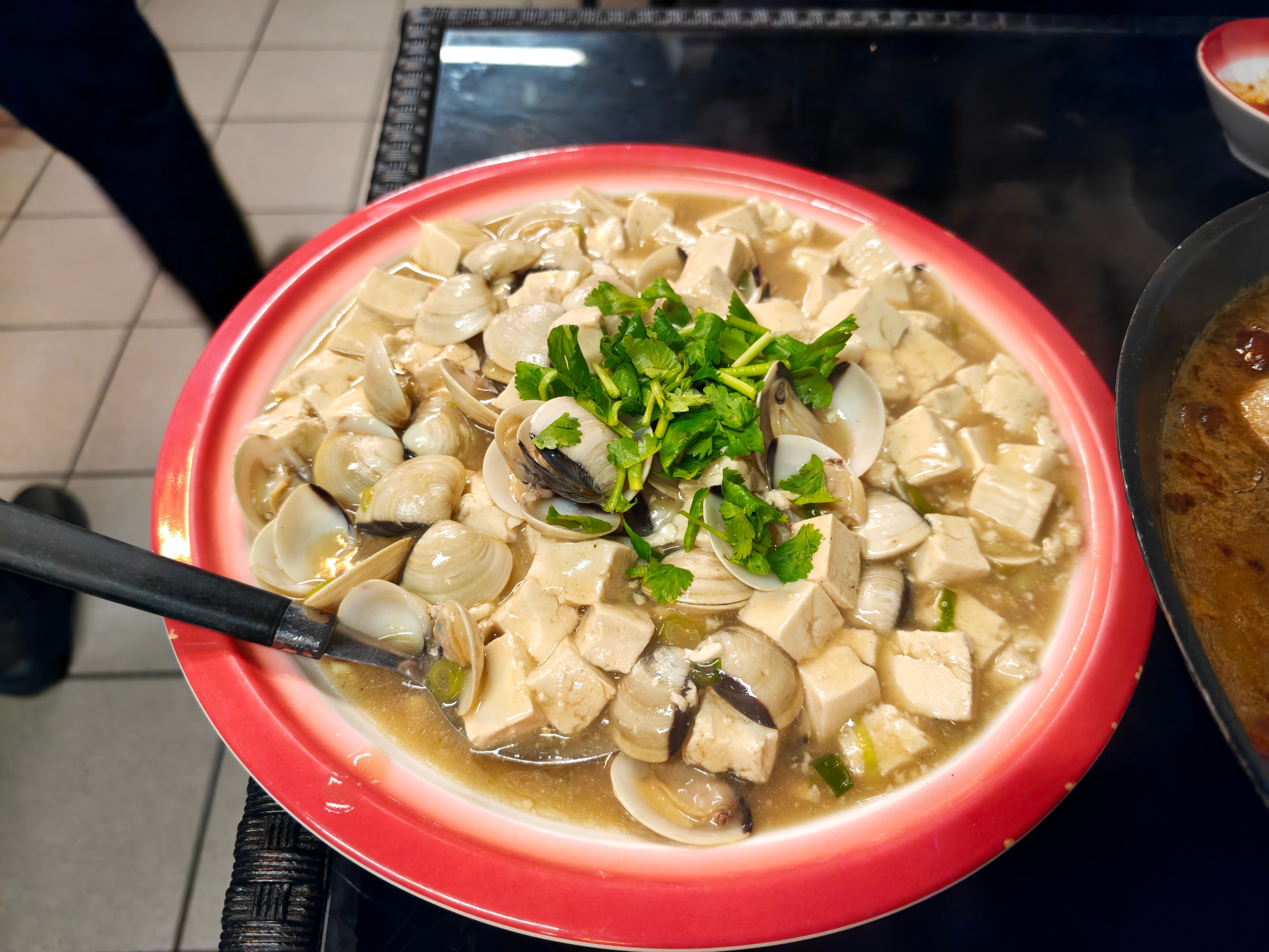 结果味儿还挺正,小鸡炖蘑菇也贼到位,蛤蜊炖豆腐也贼鲜。
