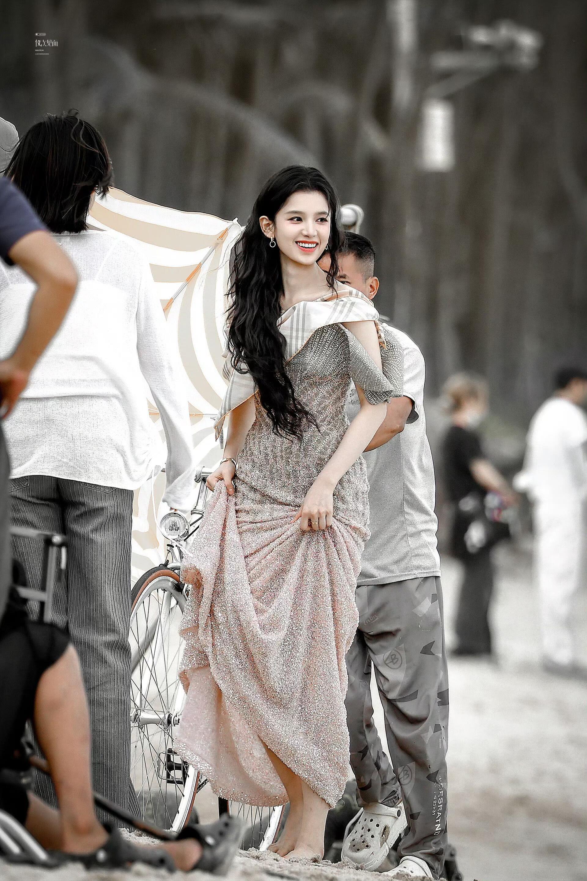 张婧仪香槟粉鱼尾裙张婧仪这样也要被说胖吗....对女明星太严格了吧[笑着哭]好美好