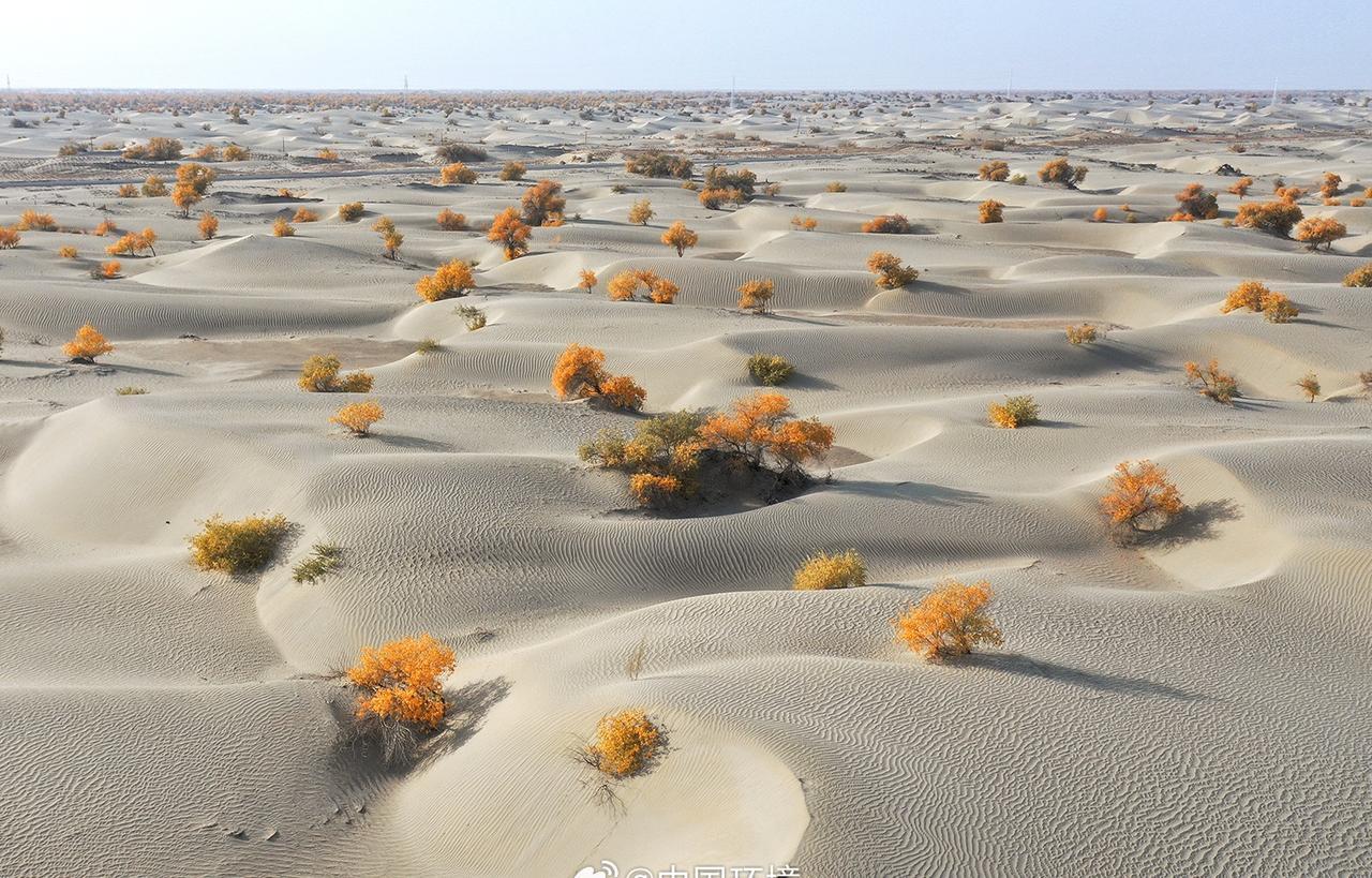 地方环保动态【金色胡杨点缀大漠,沙漠公路也是生态长廊】十月的塔克拉玛干沙漠,迎来了一场金色盛宴。从新疆兵团第一师的阿拉尔市出发,沿着沙漠公路向南行驶,窗外的景色逐渐从绿洲过渡到无垠的沙海。在这片被称为“死亡之海”的沙漠中,胡杨林正绽放着灿烂的金色。一条plog告别十月