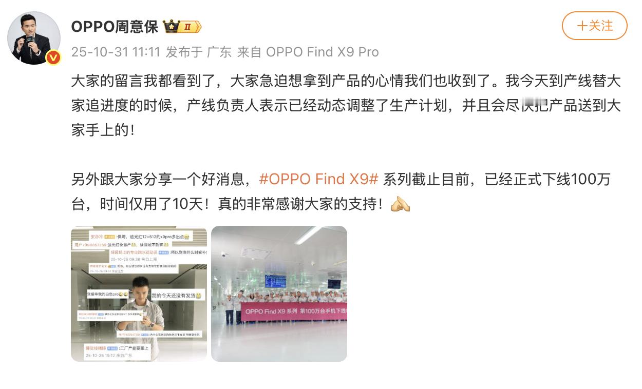 这个10月,比iPhone 17还要一机难求的手机出现了,它就是绿厂的Find X9系列,我先放几张图大家感受下线下门店的火热场景,甚至还有友商员工前来观摩,这产品力还有谁?截止目前,Find X9系列更是累计下线超过100万台。