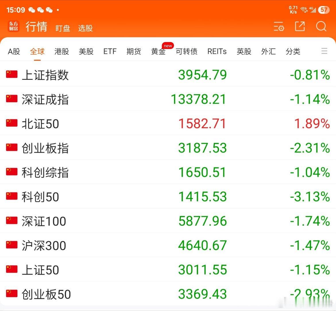 今天A股大盘沿袭了昨天下行的走势: 东方财富App显示的10项指数除北证50上涨了1.89%以外,其他9项揩数都下跌收绿。个股走势稍好于昨天: 沪深京三交易所中,上涨的股票有3760支,比昨天多2518支,其中涨幅在7%以上的有149支 ,比昨天多60支; 持平的股票有119支, 比昨天多30支; 下跌的股票有1553支,比昨天少2547支,其中跌幅在7%以上的有62支,比昨天少34支。三个市场全天的成交量为23501亿元,比昨天缩量1145亿元。今天既是周未,又是月未,科创板和创业板跌幅较大,明显为板块调整,慢牛走势未改[心][鲜花][耶][鲜花]