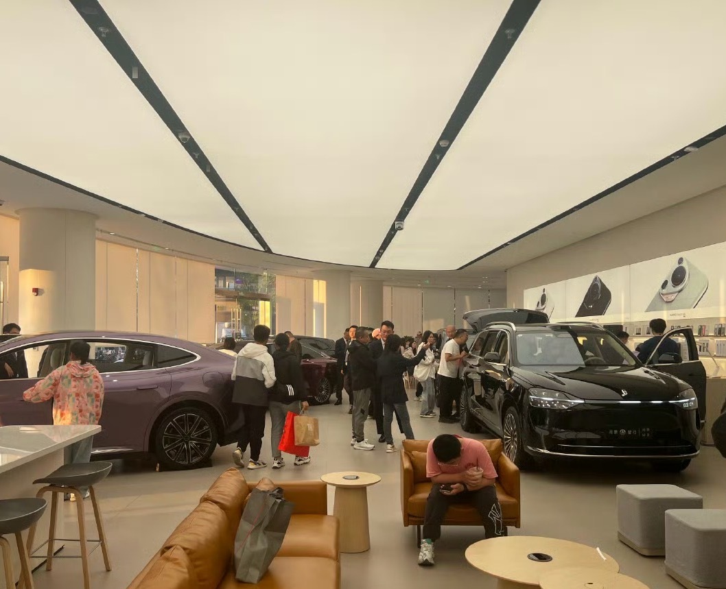国庆期间,我逛了逛北京某大型商场的汽车展区,鸿蒙智行门店的客流火爆,多数时候展车都被看车人包围。