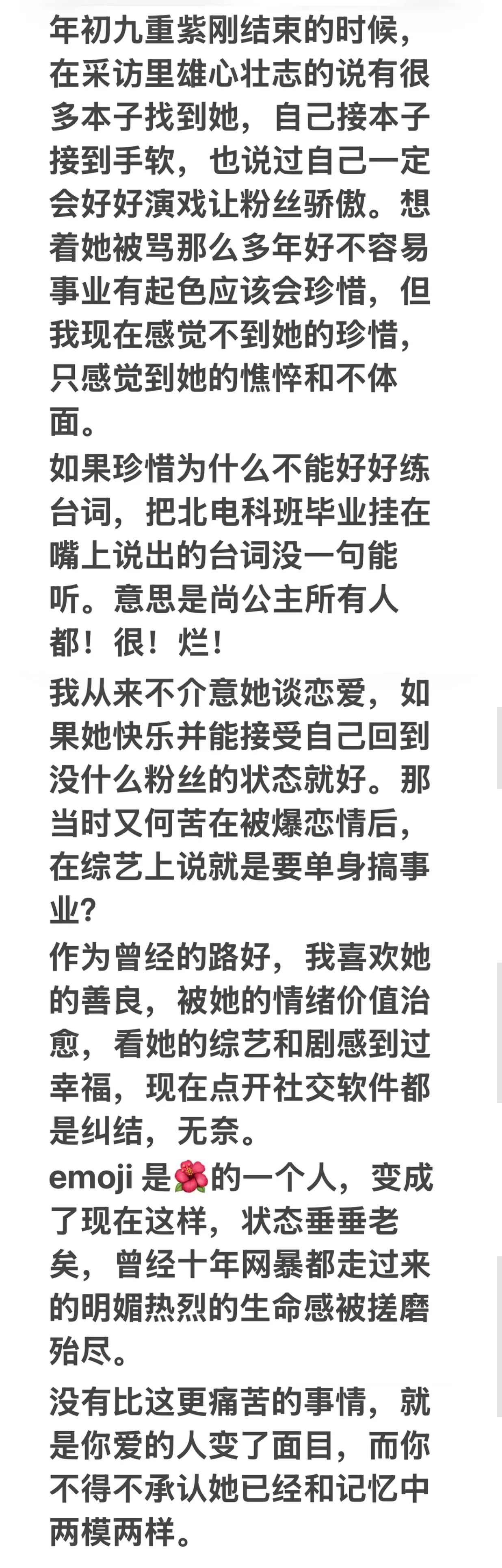 感觉被狗仔拍到绯闻只是其次吧,最近《尚公主》路透状态不好,加上综艺里频频打瞌睡,可能才是真正踩中事业粉雷点的。。。[许愿星]