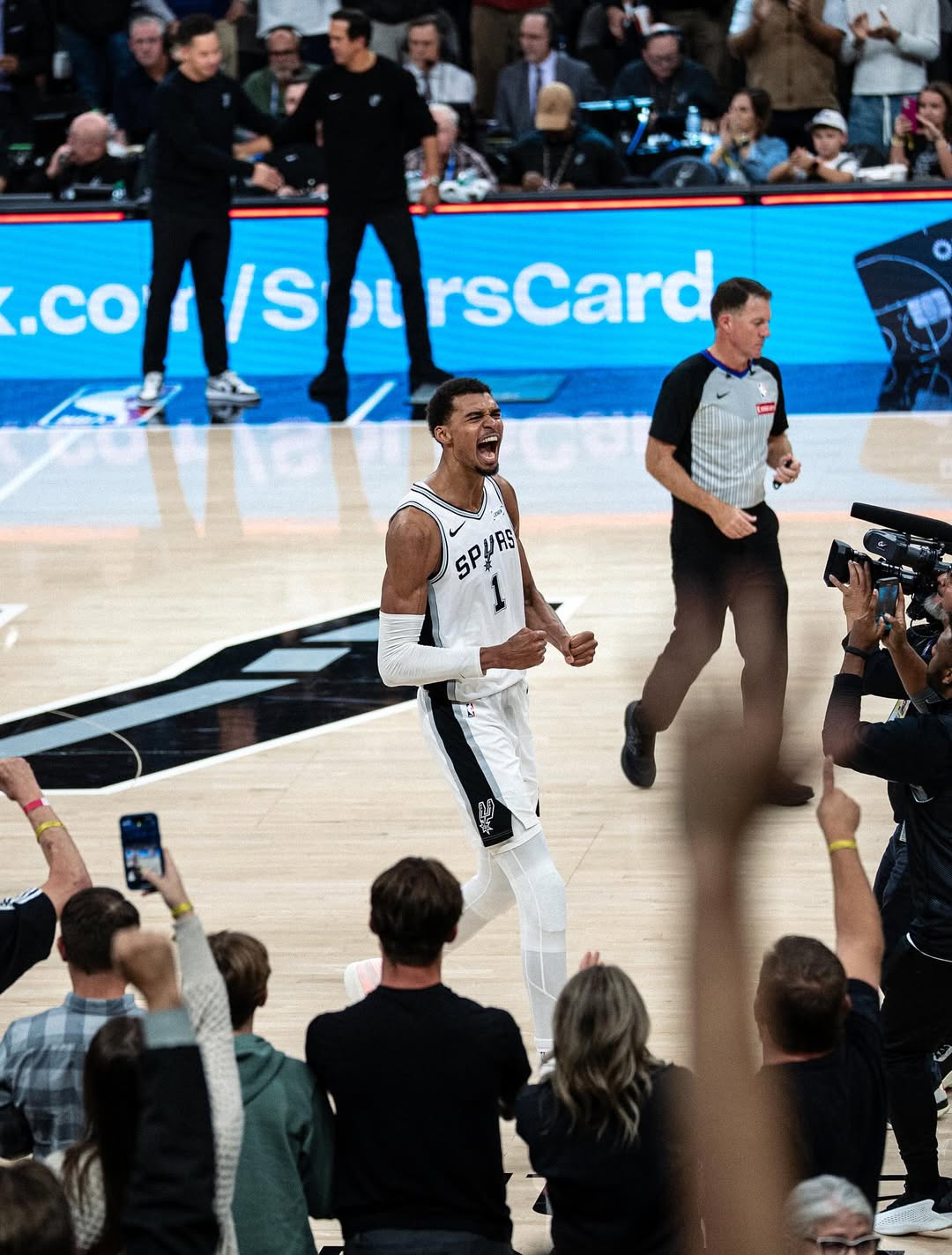 赛后,马刺球员维克托-文班亚马更新Ins,晒出一组赛场照与球迷分享。