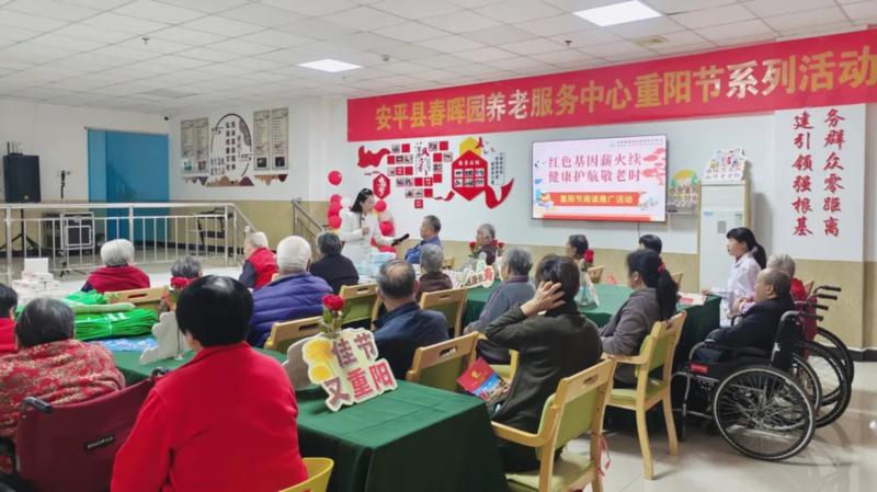 重阳节,作为中华民族的传统节日,承载着尊老、敬老、爱老、助老的深厚文化内涵。在这个充满温情与敬意的节日里,衡水市安平县图书馆联合安平县文明办、安平县春晖园敬老服务中心共同举办“我们的节日•重阳—‘红色基因薪火续•健康护航敬老时’”重阳节阅读活动,为老人们送上了特别的节日礼物。