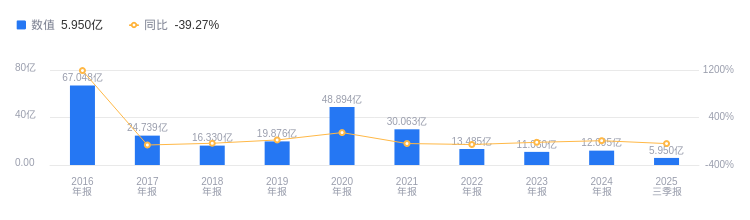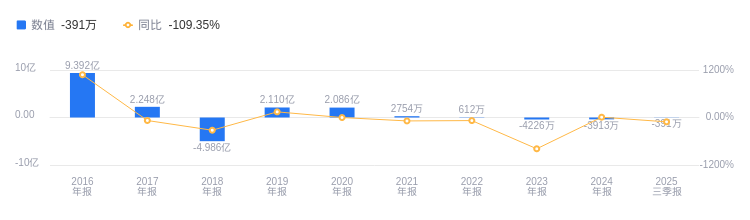 2025年三季度,三湘印象营业收入为5.95亿元,在行业69家公司中排名第49,远低于行业第一名保利发展的1737.22亿元和第二名万科A的1613.88亿元,也低于行业平均数117.27亿元和中位数19.38亿元。当期净利润为-391.46万元,行业排名第34,与行业第一名保利发展的65.15亿元和第二名*ST中地的45.86亿元差距较大,但高于行业平均数-7.07亿元和中位数-936.87万元。