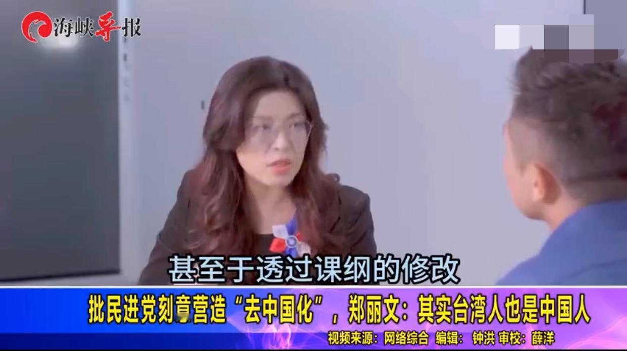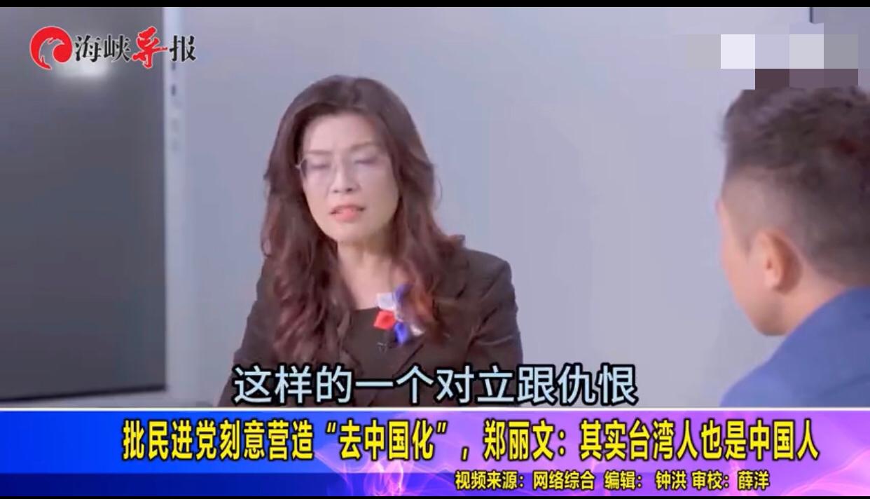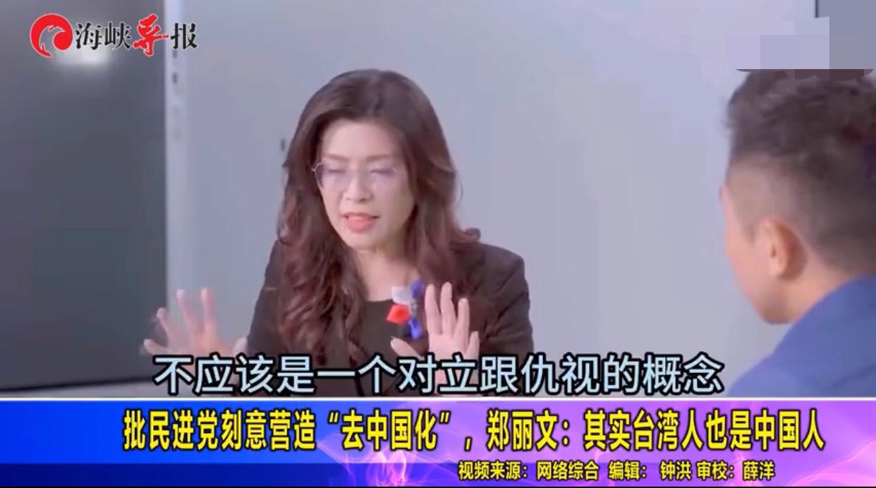 台湾国民党新任党主席郑丽文表示:“在民进党的常年政治论述中的各方面主张甚至于透过课纲的修改,他们就是希望要‘去中国化’,也得到了一定的成效,但是我们认为,台湾跟大陆,不应该是一个对立和仇恨的关系,不管是在法律上政治上文化上历史上都是如此,这样的一个对立跟仇恨,是被刻意的政治化论述和操作给营造出来的,在文化上历史上我们也都是中国人。”