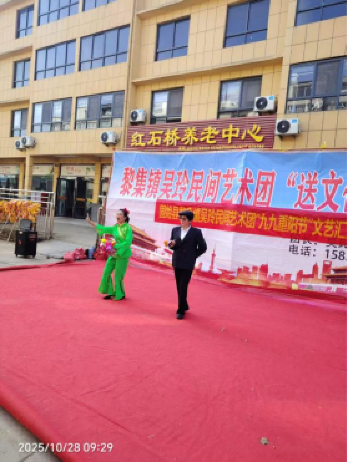 黎集镇本土民间艺术团在福寿敬老院和红石桥养老中心进行艺术表演,为老人们带来精彩纷呈的文艺节目。一个个精心编排的节目轮番上演,赢得了老人们的阵阵掌声,敬老院内欢声笑语不断,气氛和睦温馨。活动现场,黎集镇学校志愿服务团队也到场跟老人们聊天话家常,他们耐心地听老人们回忆往昔岁月,分享生活中的点滴故事,时而为老人们的人生阅历赞叹,时而与老人们一同开怀大笑。温情与爱意在人们心间涌动交织,在给老人们带来关怀和温暖的同时,也彰显了中华优秀传统文化的独特魅力。