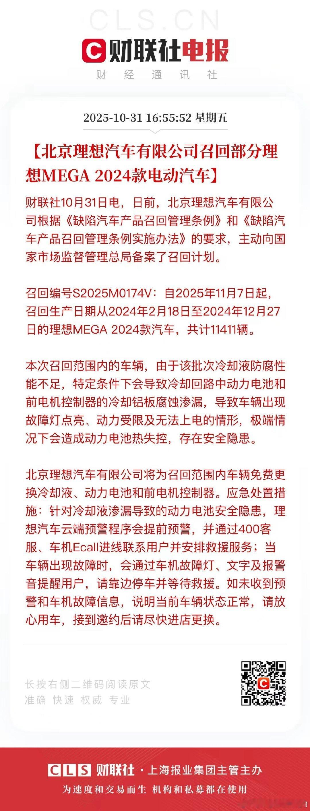 理想回应了10月23日晚上海理想MEGA 2024款车辆起火事件,并主动召回部分2024款MEGA。