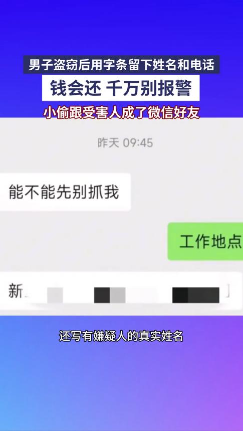 “聪明过头了!”近日,安徽芜湖,一男子上班后发现,自己放在办公室里的数千元现金不翼而飞,取而代之的是一张字条!拿起来一看,竟然是小偷留下来的,请求男子不要报警,等到网贷批下来后就还钱,上面还留有真实的姓名和电话。网友:这是什么操作? 法网恢恢,疏而不漏。偷东西属于违法行为,无论偷了多少东西,也无论出于何种理由,都要受到严厉的处罚。 据媒体10月31日的报道,当天上午,男子来到办公室后,发现抽屉里的现金不见了,只找到了一张字条。 根据字条上龙飞凤舞的几行字,男子得知这是小偷留下来的,对方表示因网贷需要银行流水,所以才出次下策“借”点钱,等到钱批下来后会及时归还,最后还留了自己的姓名和联系方式。 男子的第一反应当然是报警,谁知道这小偷会不会还钱,民警看到字条后,第一反应是上面的信息都是假的,是为了博取同情,毕竟这种手段他们见多了。 可按照号码拨打过去后,却发现真的是小偷本人,随后民警和对方约了见面地点,最终将小偷逮捕归案。 原来,字条上写的东西基本属实,这小偷没有工作,而且有多次前科,这次是为了借网贷才偷的钱。 不得不说这年头什么样的奇葩都有,竟然还有这样偷东西的,但不要以为留下字条就属于“借”而不是“偷”了,只要未经人家允许,就擅自把对方的东西拿走,这就属于盗窃,找什么理由都不行! 信息来源:《男子偷钱后留下字条:千万别报警放款了会还钱还留下真实姓名与手机号警方:刑拘!》齐鲁频道