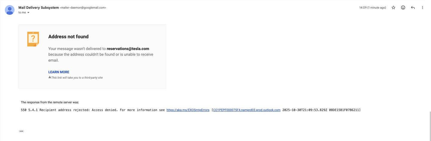 【等了七年半、不能顺利退订,特斯拉Roadster准车主在线催交付】10 月 31 日消息,北京时间今天清晨,OpenAI CEO 奥尔特曼在 X 上发帖,题为《三幕故事》。他附上 2018 年 7 月的一封邮件截图,显示他为第二代特斯拉 Roadster 支付了 45000 美元(IT之家注:现汇率约合 32 万元人民币)订金。奥尔特曼还贴出了周四自己发送的后续邮件截图,请求取消订单并退回 50000 美元,但邮件被退回未送达。奥尔特曼在后续帖子中坦言:“我真的很期待这辆车!我理解会有延迟。但 7 年半的等待实在太漫长了。”
